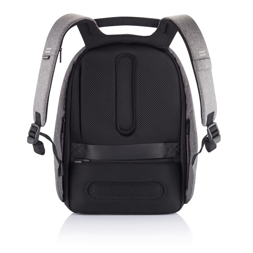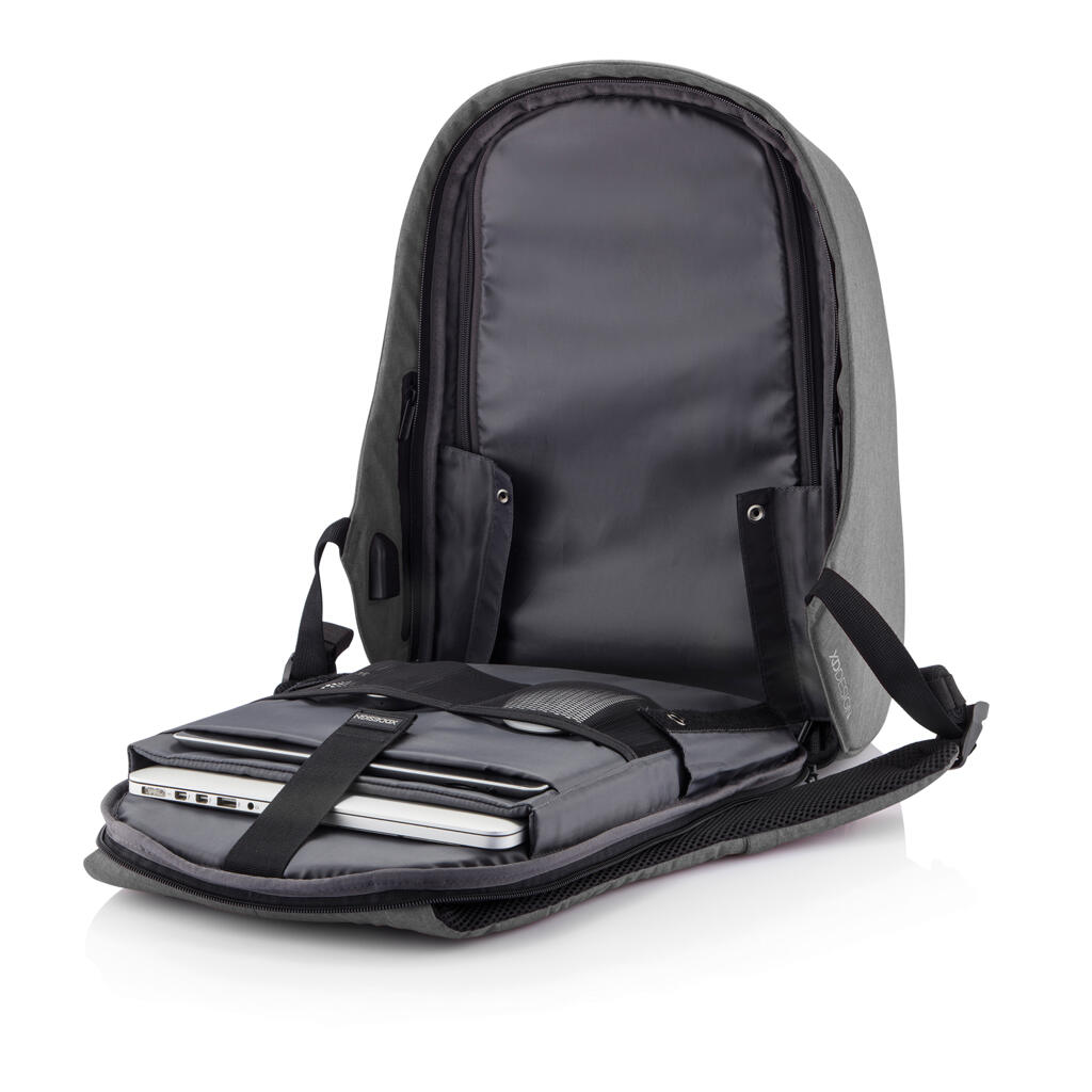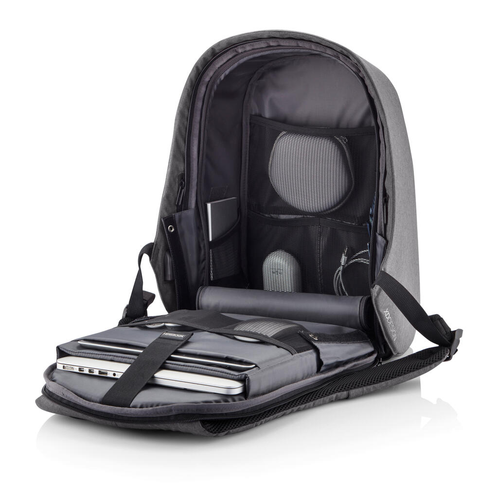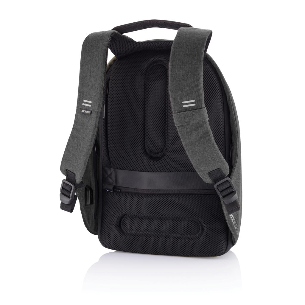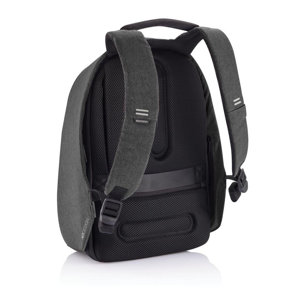 Коллекция Bobby Hero — это новое поколение антикражных рюкзаков. Новые модели подарят вам чувство безопасности, беззаботности и организованности в путешествии. Такие основные функции, как защита от порезов, скрытые молнии и потайные карманы, сохранят ваши вещи в безопасности во время ваших поездок на работу или в путешествие. Как и в предыдущих моделях в Bobby Hero интегрирован удобный USB порт для подзарядки ваших гаджетов, водоотталкивающая ткань, светоотражающие полосы и багажный ремень. Внутри предусмотрены мягкие отделения для ноутбука диагональю 17", для планшета диагональю до 12,9" и основное отделение для всего самого необходимого. Более того, новая модель — экологичная, она сделана из переработанных пластиковых бутылок. Зарегистрированный дизайн.