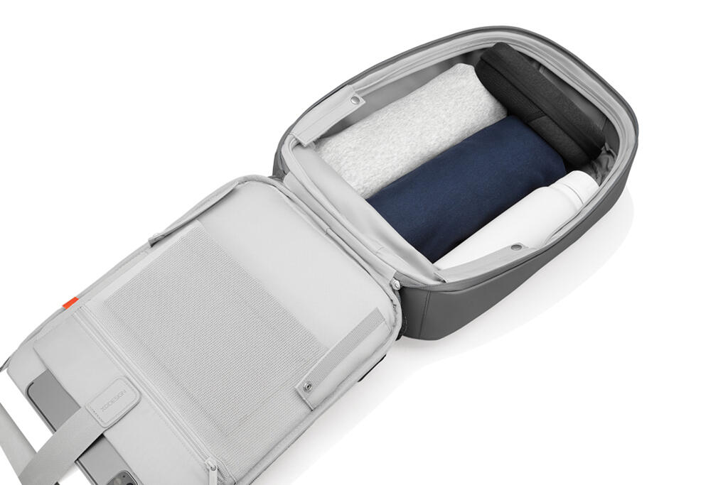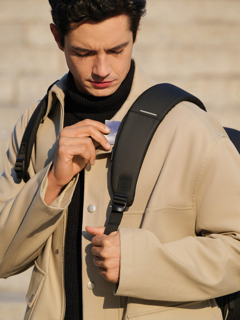 В рюкзаке Bobby Edge идеально сочетаются современный дизайн, комфорт и безопасность. Он подойдет как для повседневного использования, так и для поездок, а ассортимент цветов позволит выбрать подходящий и для женщин, и для мужчин. Конструкция рюкзака легкая, прочная и хорошо держит форму. Водоотталкивающая внешняя поверхность и водонепроницаемая молния надежно защитят вещи от дождя и снега. Внутри — одно основное отделение с продуманной системой организации вещей. Множество карманов позволит взять с собой все, что может понадобиться в путешествии или то, без чего не обойтись каждый день. На спинке и на лямке рюкзака располагаются потайные карманы с RFID-защитой: в них можно положить кошелек, телефон или банковские карты. Bobby Edge открывается на 180º, что значительно упрощает доступ к вещам внутри. Помимо привычной скрытой молнии в этом рюкзаке предусмотрен новый пуллер (собачка молнии). Он изготовлен из металла и оснащен функцией самоблокирования — это обеспечивает дополнительную защиту от карманников. Антикражный рюкзак Bobby Edge от XD Design изготовлен из переработанных пластиковых бутылок. Подходит для ноутбука диагональю до 16’’. Сертифицировано AWARE™. Наличие индикаторных частиц AWARE™ подтверждает, что мы действительно используем переработанные материалы. 2% с продажи каждой вещи, отмеченной сертификатом AWARE™, мы перечисляем в поддержку всемирной организации Water.org.