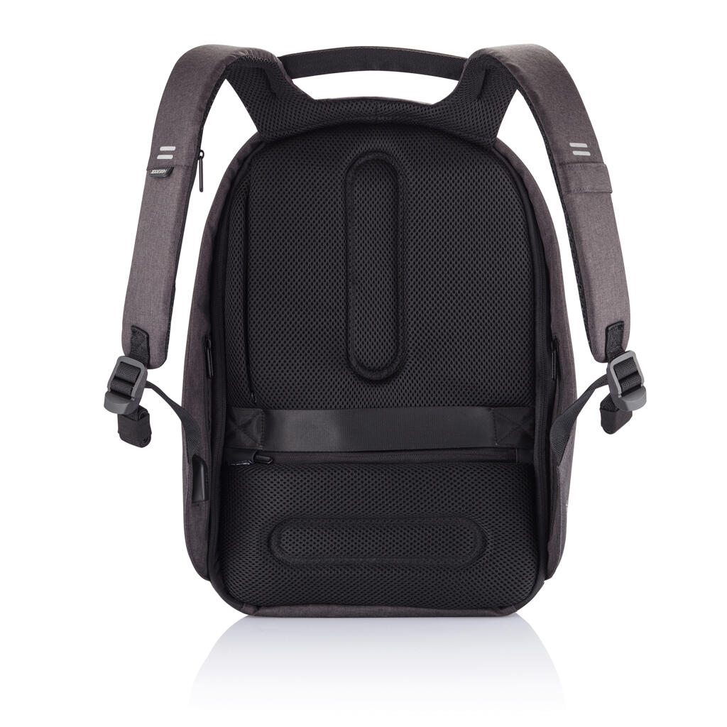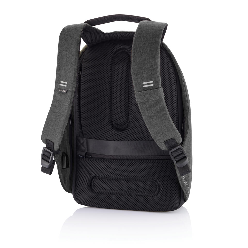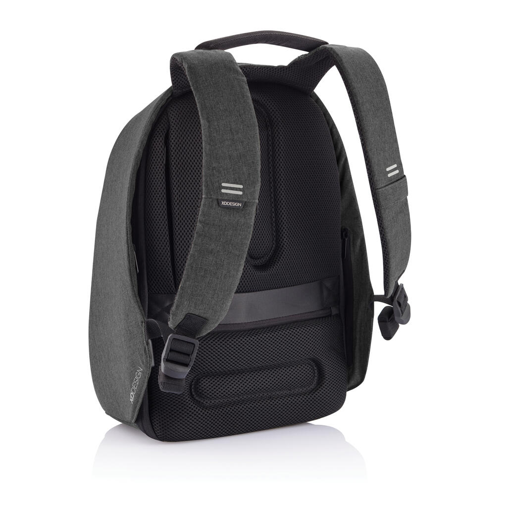 Коллекция Bobby Hero — это новое поколение антикражных рюкзаков. Новые модели подарят вам чувство безопасности, беззаботности и организованности в путешествии. Такие основные функции, как защита от порезов, скрытые молнии и потайные карманы, сохранят ваши вещи в безопасности во время ваших поездок на работу или в путешествие. Как и в предыдущих моделях в Bobby Hero интегрирован удобный USB порт для подзарядки ваших гаджетов, водоотталкивающая ткань, светоотражающие полосы и багажный ремень. Внутри предусмотрены мягкие отделения для ноутбука диагональю 15,6", для планшета диагональю до 12,9" и основное отделение для всего самого необходимого. Более того, новая модель — экологичная, она сделана из переработанных пластиковых бутылок. Зарегистрированный дизайн.