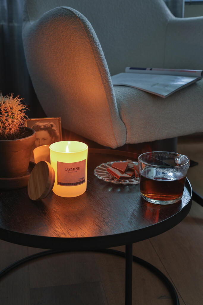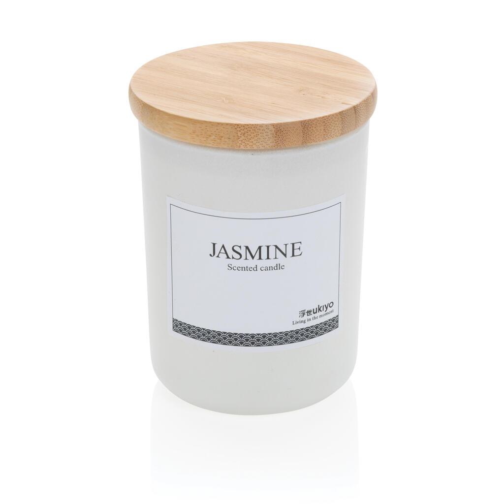 Создайте в доме уютную атмосферу с помощью ароматической свечи Ukiyo. Тонкий запах жасмина для особого настроения. Ароматическая свеча поставляется в стеклянном стакане с бамбуковой крышкой. Изготовлена из воска с 3% ароматической эссенцией (без продуктов животного происхождения). Время горения 30 часов.