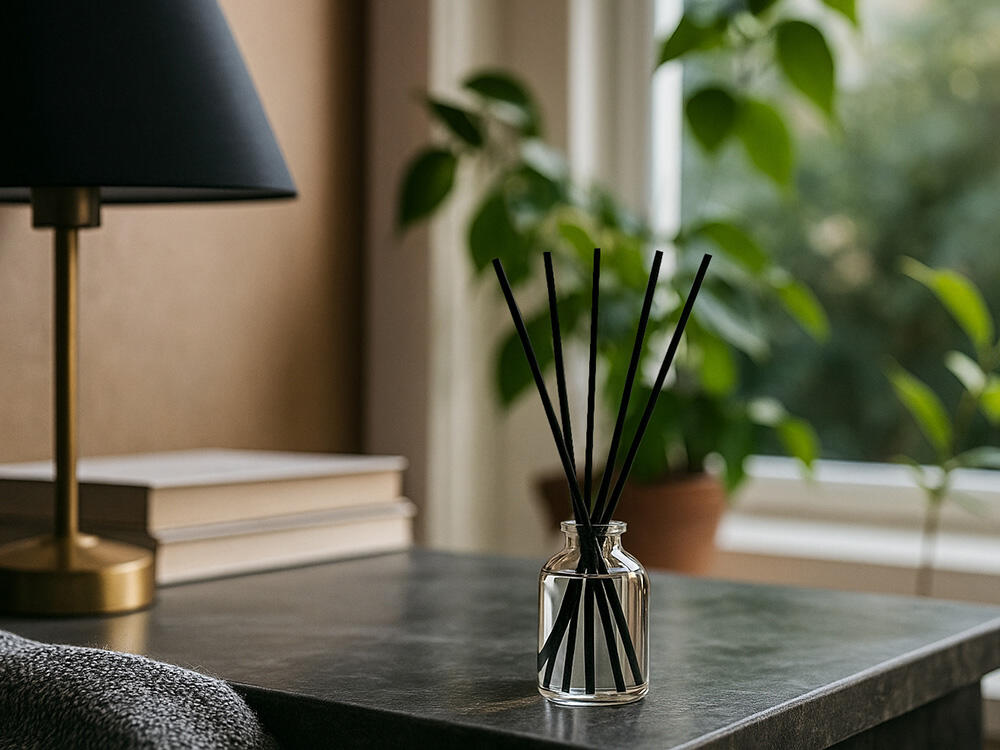 Прозрачный флакон без лишних деталей гармонично впишется в любой интерьер, а чёрные фибровые палочки обеспечат равномерное и продолжительное распространение аромата.