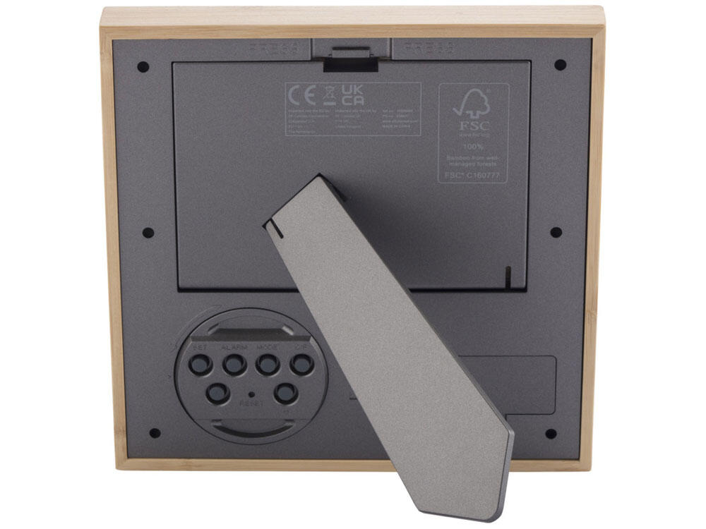 Бамбуковая фоторамка Sasa с метеостанцией является стильным и функциональным дополнением вашего дома или офиса. Основной корпус изготовлен из бамбука, полученного из ответственных источников, а задний корпус из переработанной пластмассы, что придает фоторамке естественной элегантности и обеспечивает экологичность. Силиконовые кнопки обеспечивают удобный и отзывчивый опыт взаимодействия, а ЖК-стекло гарантирует четкость изображения. Фоторамка также предлагает ряд полезных функций. В обычном режиме фоторамка отображает время, месяц, дату, день недели и температуру. Она также имеет функцию будильника/повторного сигнала, чтобы помочь вам начать свой день вовремя. Режим напоминания о дне рождения позволяет следить за важными датами, а режим таймера идеально подходит для расписания задач или мероприятий. Кроме того, режим оценки музыки предлагает до 7 песен на выбор для вашего удовольствия. Включает 2 батарейки типа АА. Поставляется с коробкой из крафт-бумаги и инструкцией по эксплуатации.