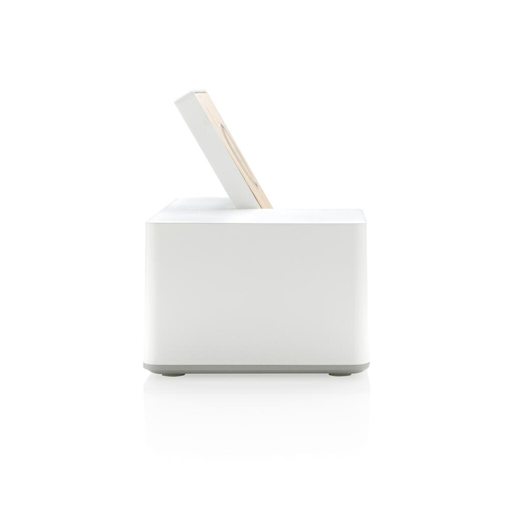 Обновите свой рабочий стол с помощью этой исключительно удобной док-станции для беспроводной зарядки. Выполненная из прочного ABS и 100% натурального бамбука, она идеально впишется в интерьер вашей гостиной или пространство на вашем рабочем столе. Док-станция 5 W идет в комплекте с 150-сантиметровым кабелем micro USB для подключения к источнику питания. Беспроводная колонка 3W позволяет вам наслаждаться музыкой с рабочего расстояния до 10 метров с помощью Bluetooth версии 4.1. При одновременном использовании обеих функций убедитесь, что устройство подключено к источнику питания. Совместимость со всеми устройствами с поддержкой беспроводной зарядки QI, такими как Android последнего поколения, iPhone 8, 8S и X. Зарегистрированный дизайн®