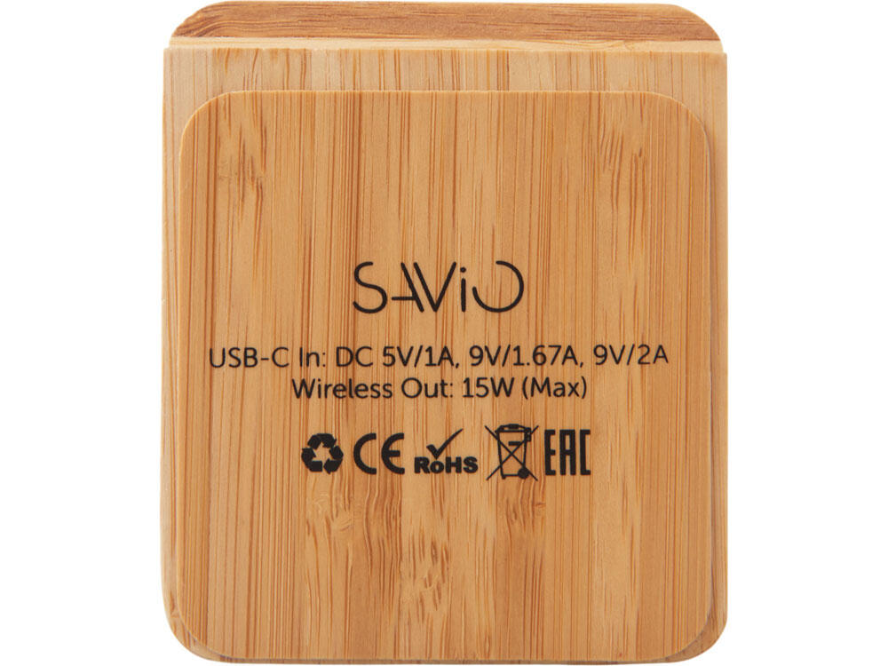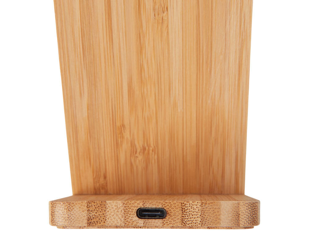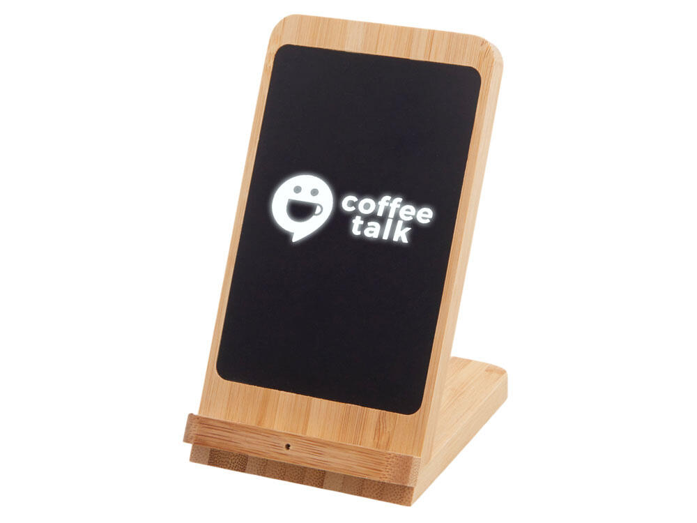 Знакомьтесь с инновационным беспроводным зарядным устройством на 15 Вт — созданным для комфорта, стиля и экологичного образа жизни. Его корпус сочетает натуральный бамбук и переработанный ABS-пластик, даря не только приятную на ощупь текстуру, но и выражая вашу заботу об окружающей среде. Уникальная конструкция с двумя центрами зарядки позволяет заряжать смартфон как в вертикальном, так и в горизонтальном положении — идеально для просмотра видео, видеозвонков или навигации во время зарядки. А встроенная белая подсветка с возможностью нанесения логотипа превращает зарядку в персонализированный аксессуар: ваш бренд или имя мягко светится, добавляя атмосферу уюта и премиальности.