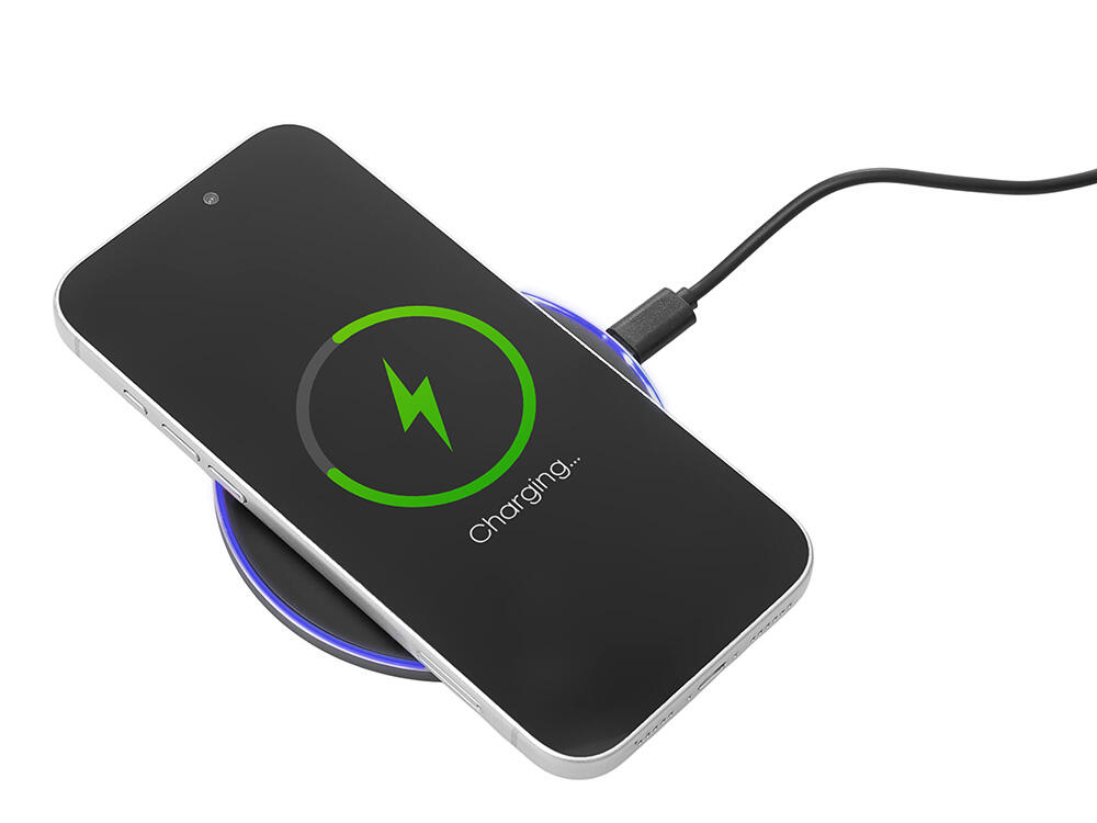 Беспроводное зарядное устройство «Ironwood N4» — это идеальное сочетание скорости, стиля и экологичности. С мощностью 15 Вт оно быстро заряжает совместимые смартфоны*, не требуя кабелей и лишних усилий. Корпус выполнен из переработанного АБС-пластика и алюминия по международному стандарту RCS. Тонкое и лаконичное, оно легко впишется в любой интерьер — от офиса до спальни. Атмосферная подсветка по краям мягко сигнализирует о режиме: зелёный — готов к работе, синий — зарядка в процессе.