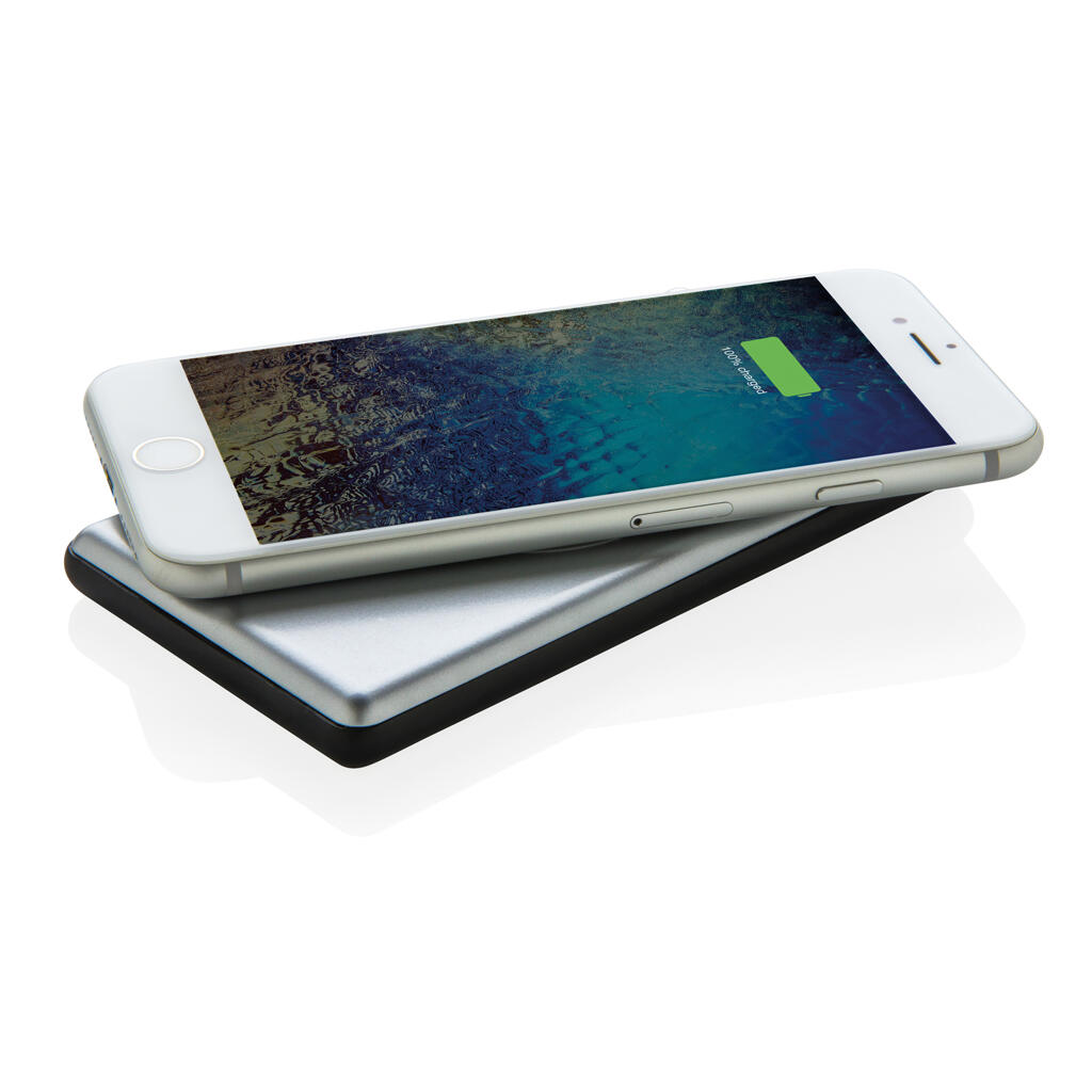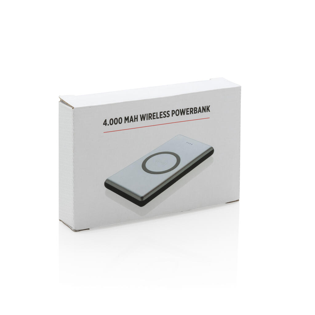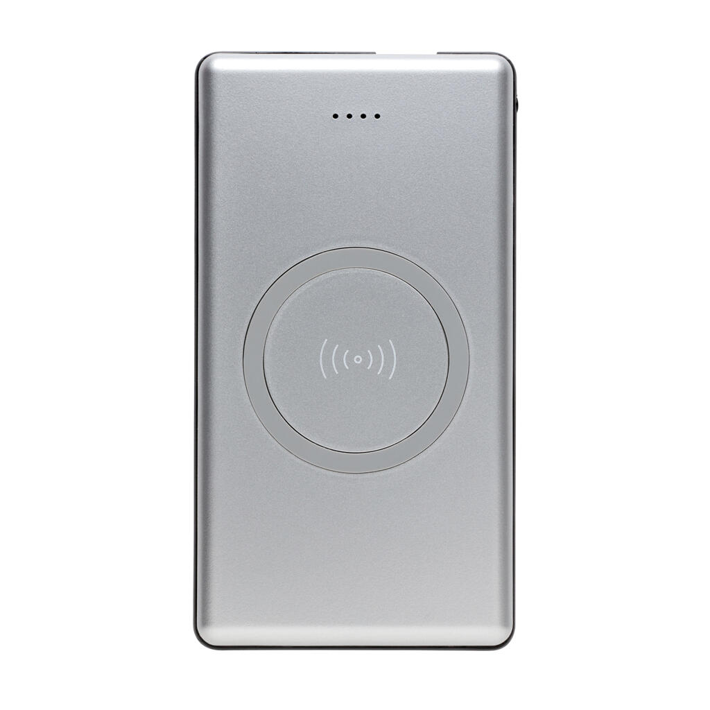 Беспроводной внешний аккумулятор емкостью 4 000 мАч с литиевой батареей высокого качества. Кнопка включения / выключения и индикатор оставшегося заряда. Аккумулятор имеет встроенную функцию беспроводной зарядки 5W для заряда вашего мобильного телефона без использования кабеля. Совместим со всеми устройствами, поддерживающими технологию QI, такими как Android последнего поколения, iPhone 8, 8S и X. Выход USB: 5V / 2.1A. Вход: 5V / 1.5A. Беспроводной выход: 5V / 1A 5W. В комплекте кабель micro USB.