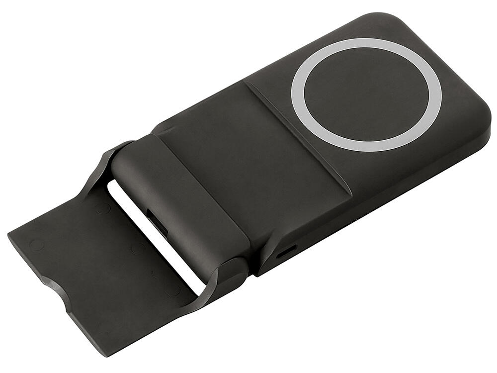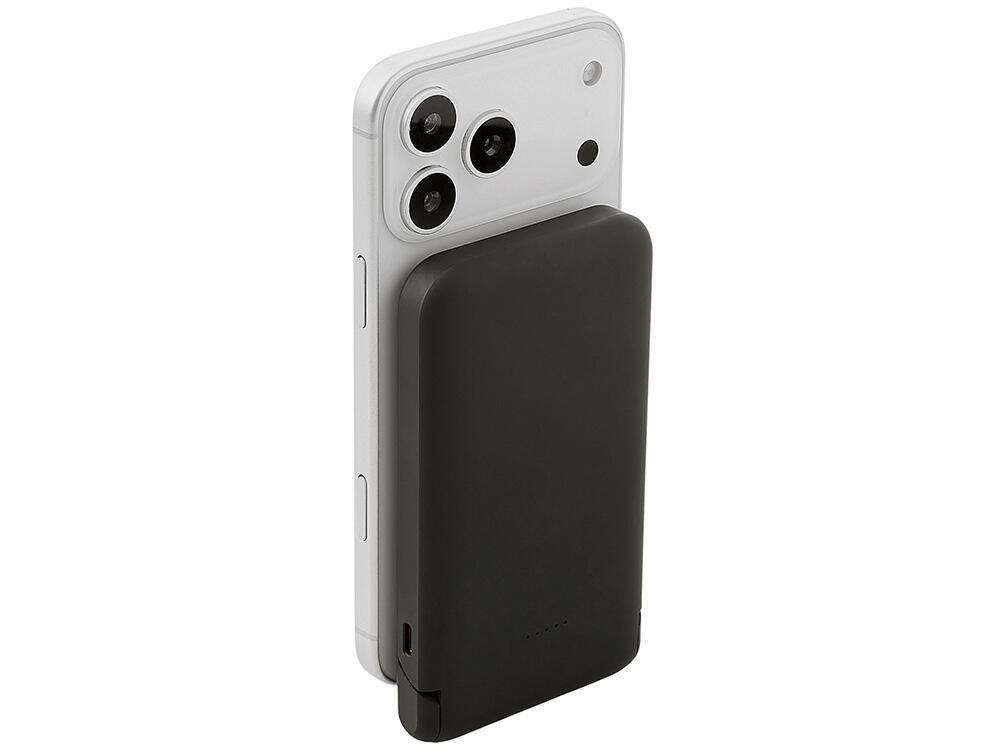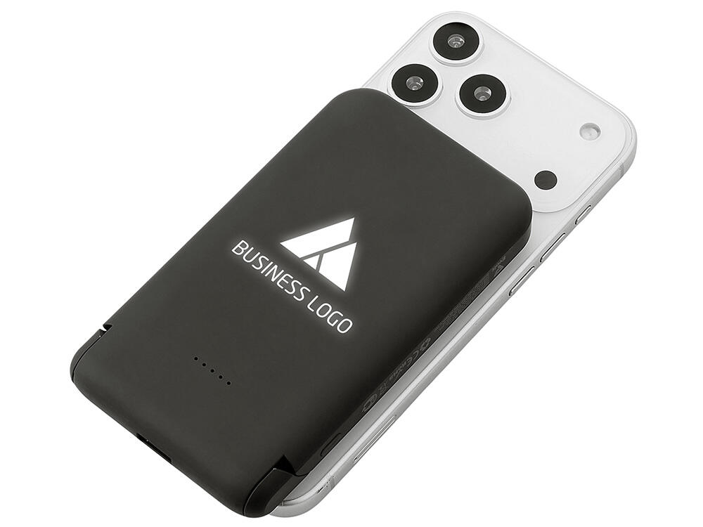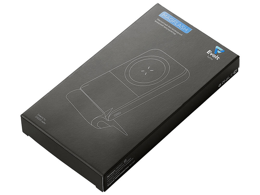 Беспроводной внешний аккумулятор «Magflash» — это не просто запас энергии, а стильный и умный аксессуар для современного ритма жизни. С ёмкостью 10000 мАч и быстрой зарядкой он надежно обеспечивает энергией смартфоны и современные гаджеты USB-C, обеспечивая до нескольких полных циклов зарядки. Поддержка беспроводной зарядки мощностью 15 Вт позволяет быстро восполнять энергию без проводов — просто положите устройство на поверхность, к iPhone аккумулятор примагнитится, что значительно облегчает его использование. Встроенный держатель-подставка позволяет комфортно разместить смартфон для просмотра видео или управления одной рукой. А светодиодная подсветка логотипа создаёт атмосферу — работает как индикатор заряда и стильный акцент вашего бренда.