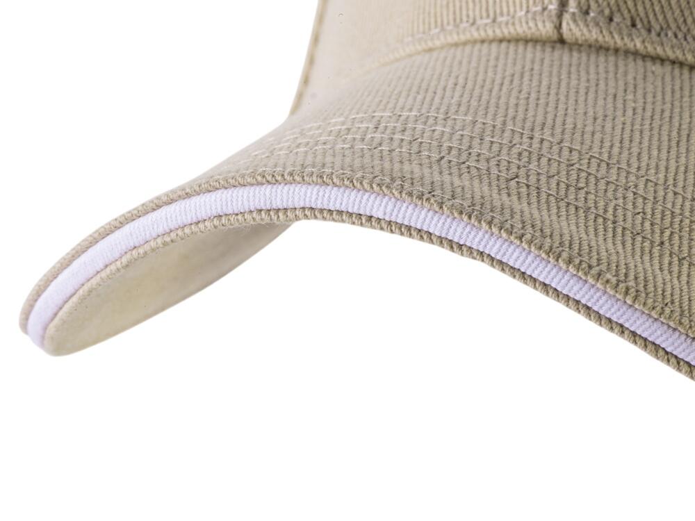 Контрастный кант по козырьку и заднему хлястику.