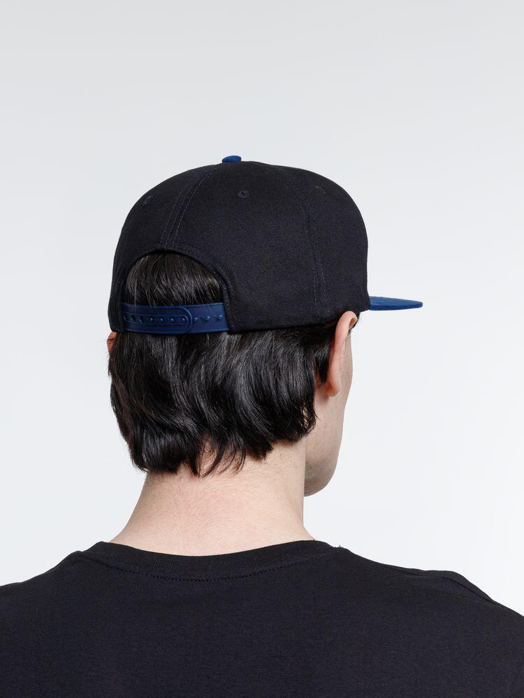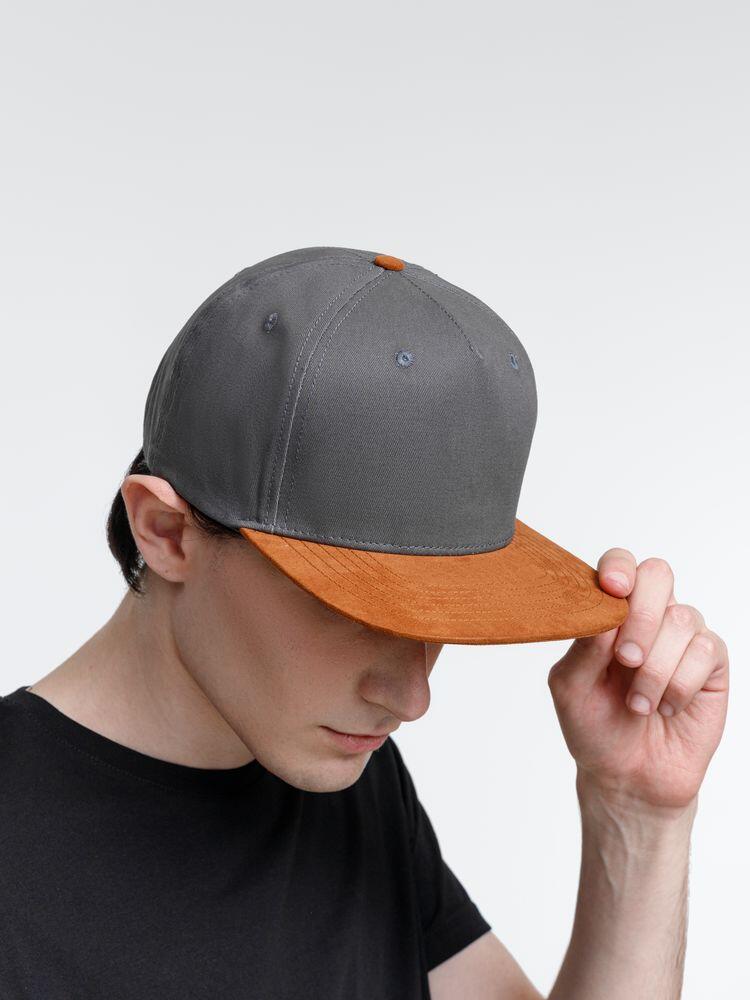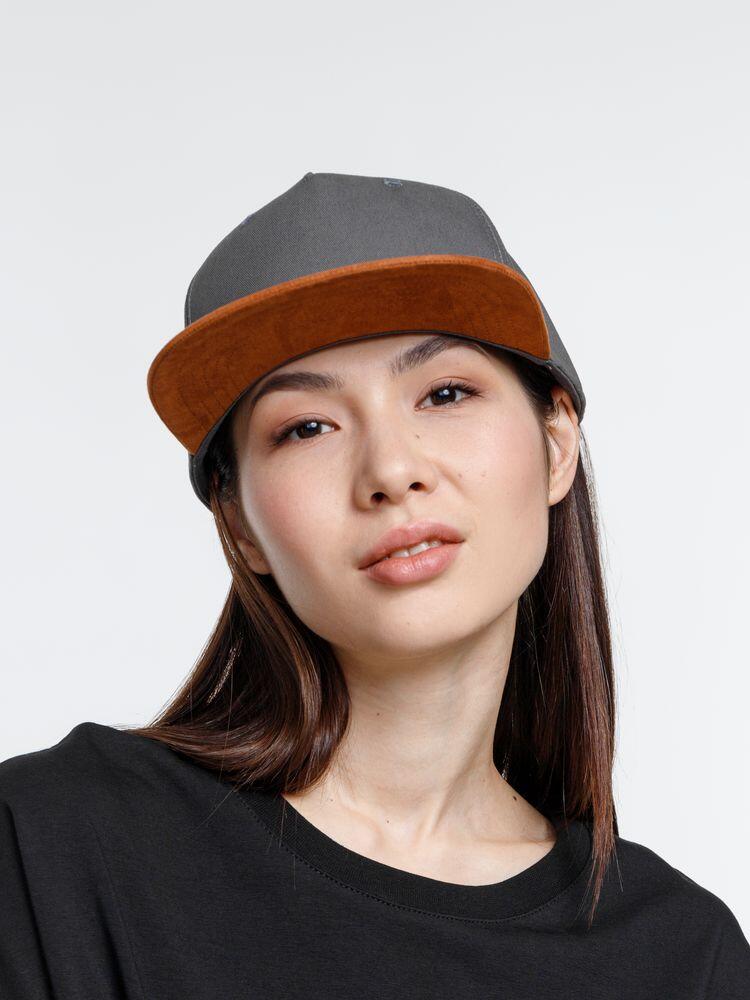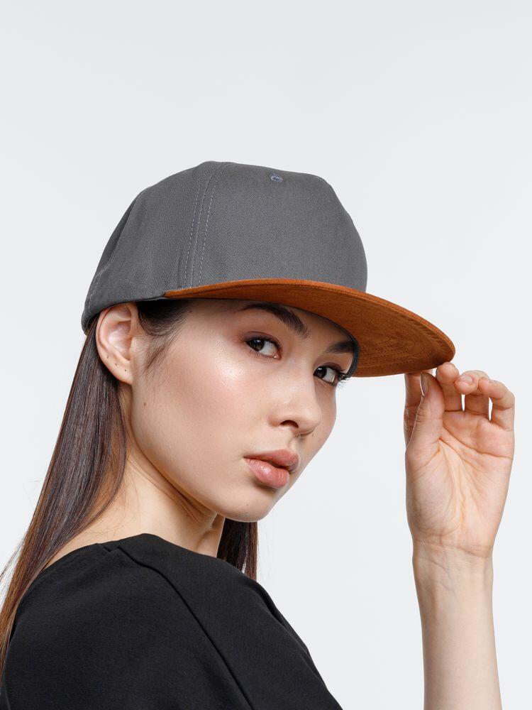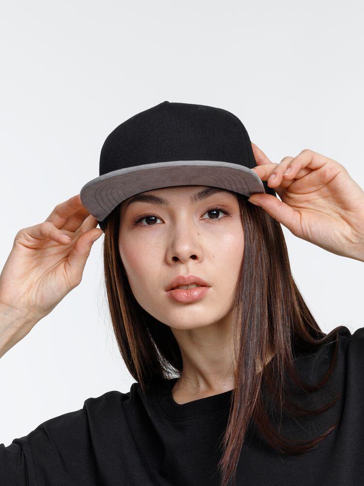 Плотный контрастный прямой козырек из мягкой, приятной на ощупь ткани с велюровым эффектом