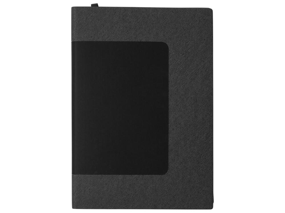 Обложка выполнена из двух видов искусственной кожи: рифленого, в тонкую полоску, основного материала и патча с покрытием софт-тач, который очень приятен на ощупь. Упаковка — шубер из крафта.