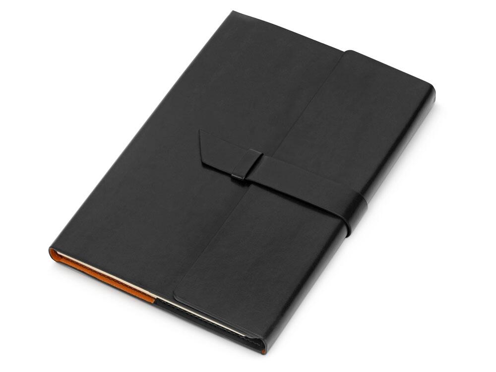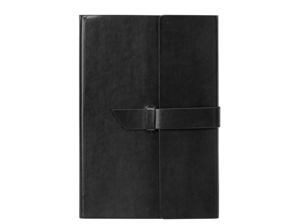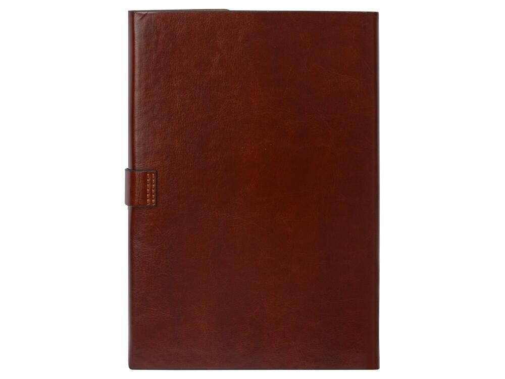 Бизнес-блокнот формата А5 в твердой обложке из искусственной кожи станет отличным подарком для любого клиента. Блокнот состоит из обложки с клапаном и сменного блока с линованными страницами. Внутри обложки есть петля для ручки в тон (ручка в комплект не входит).