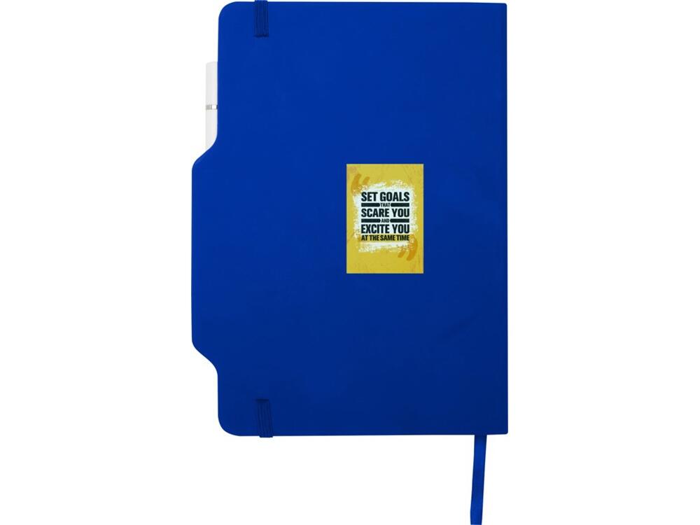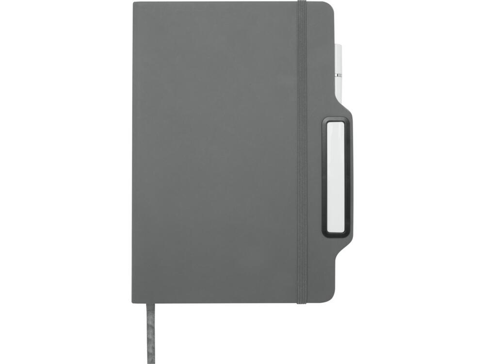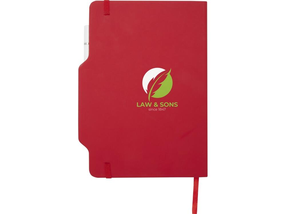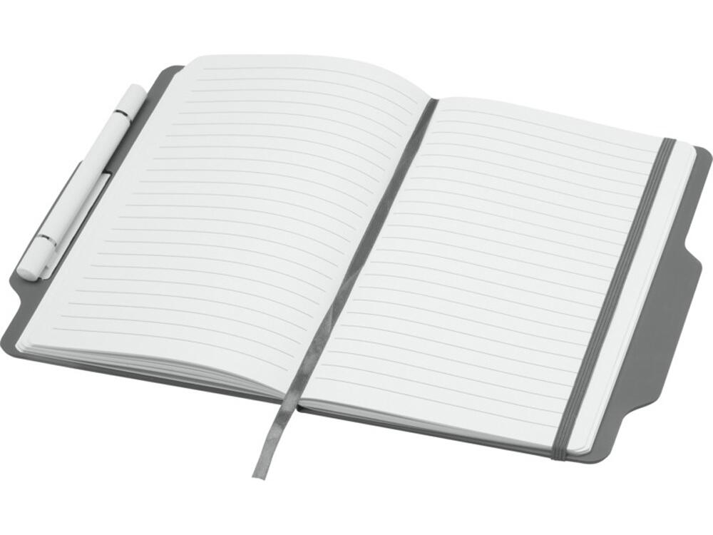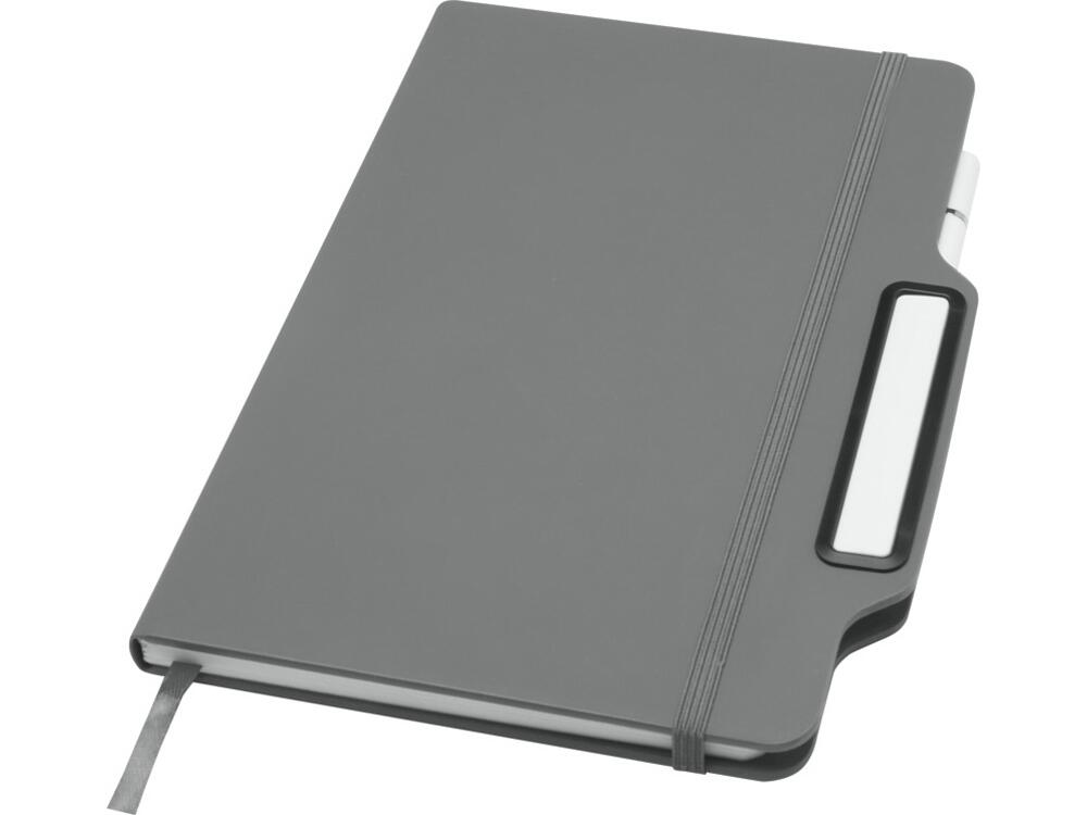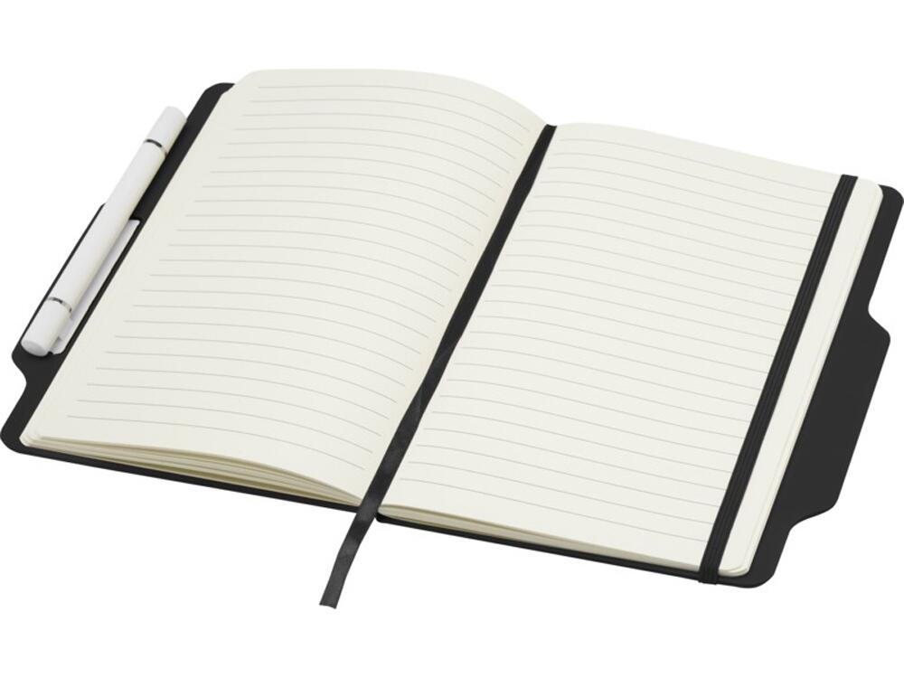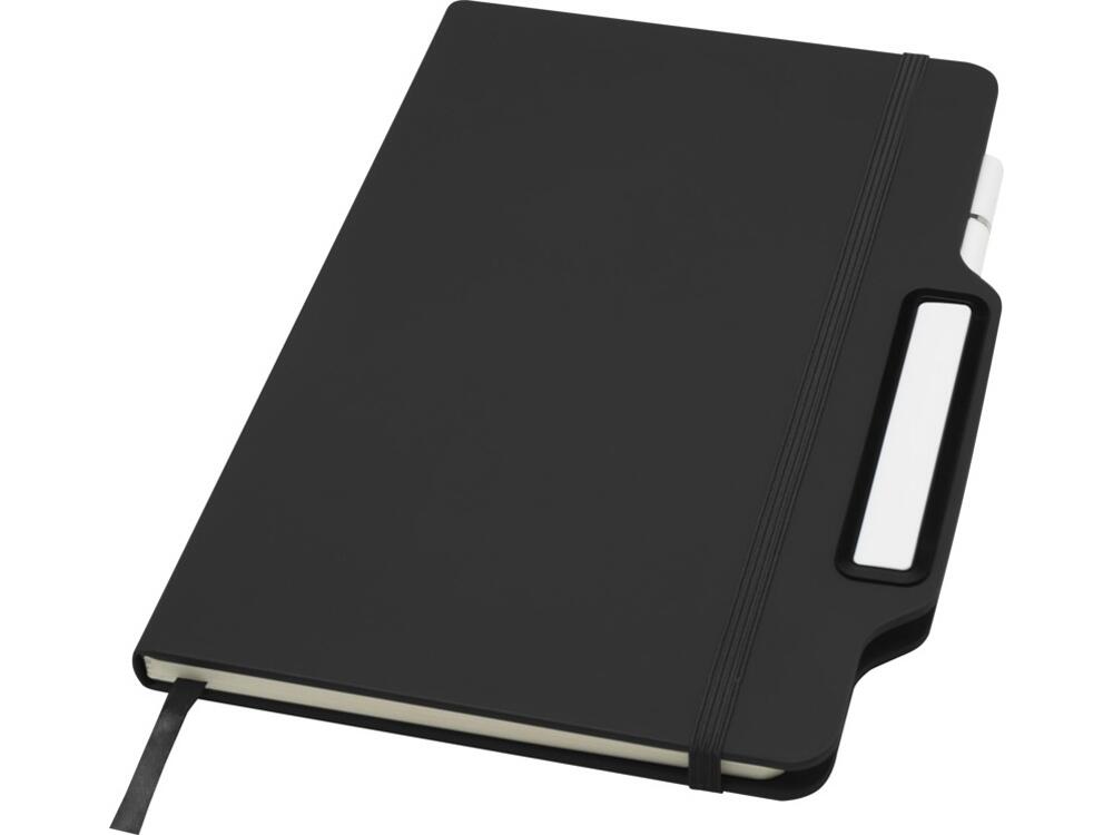 Блокнот Nexus формата A5 в твердой обложке с ручкой/карандашом, с 80 кремовыми линованными листами бумаги плотностью 70 г/м², с закругленными углами, эластичной застежкой и ленточным маркером. Ручка двухсторонняя: одна сторона — ручка с черными чернилами, а другая — карандаш. Длина непрерывной линии ручки: 1000 метров. Размер пера: 1,00 ММ. FSC certified paper, PU Plastic.