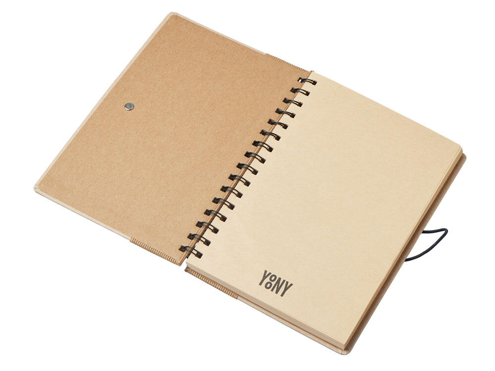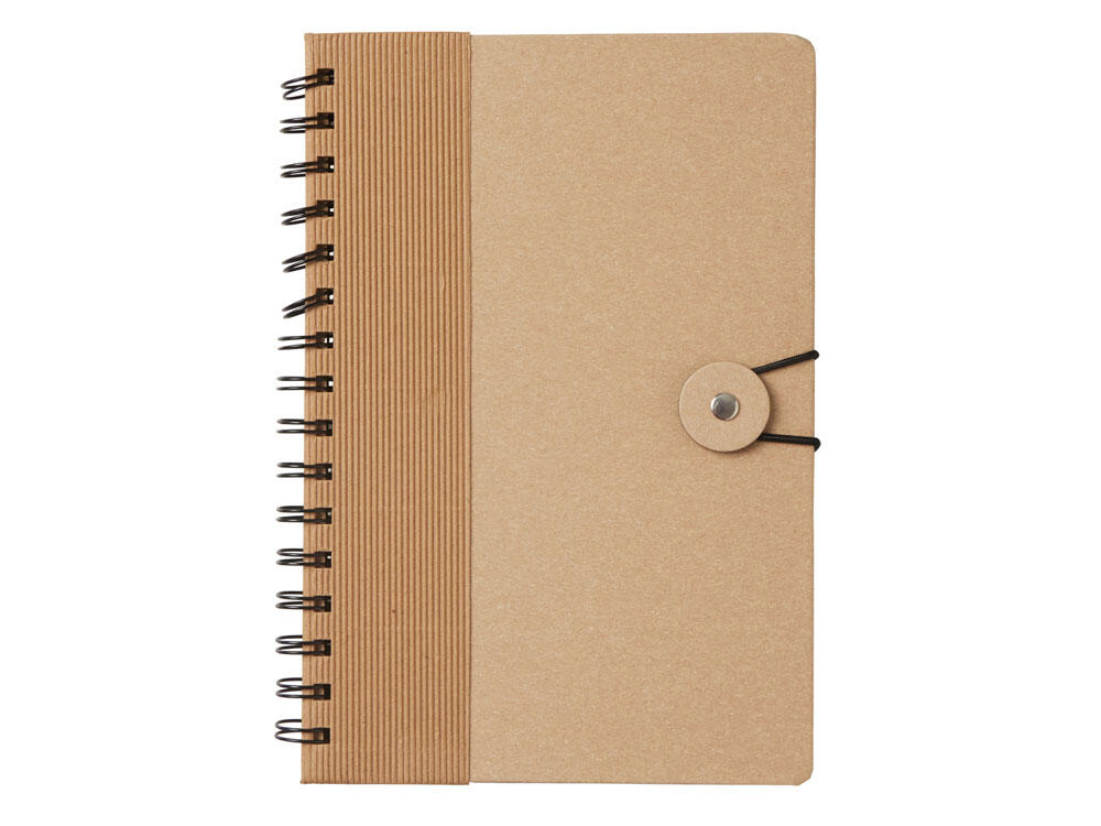 Крафтовый блокнот на спирали с фиксирующей резинкой. 80 листов коричневой бумаги 70 г/м2.
