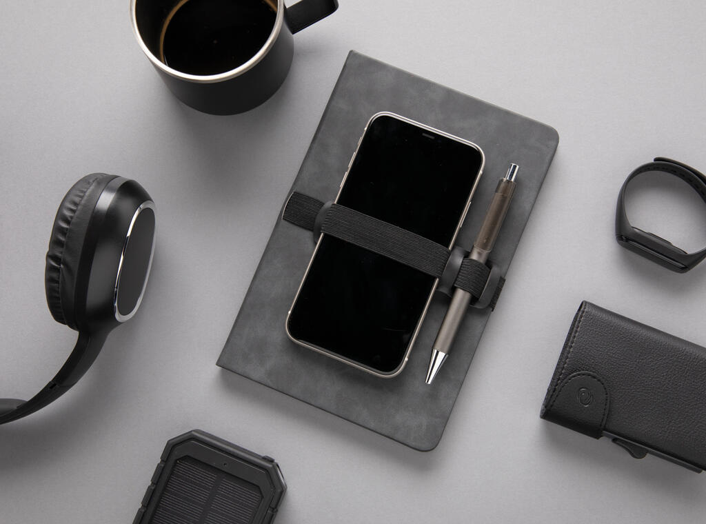 Блокнот Deluxe в твердом переплете из PU с держателем для телефона и ручки, А5