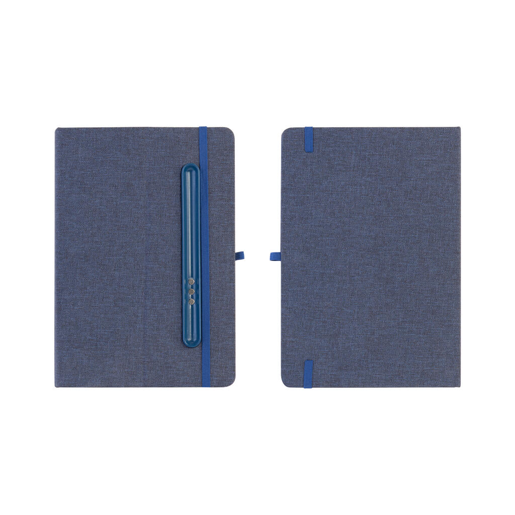 - Блокнот формата А5 с резинкой-фиксатором и встроенным в обложку магнитным держателем для ручки. Внутренний блок состоит из 160 страниц в линейку бумаги плотностью 70 г/м2. Материал обложки изготовлен из переработанного (RPET) пластика. Магниты прочно и надёжно закрепляют металлическую ручку на обложке. Бонус – обложка трансформируется в удобную подставку для смартфона/планшета/ноутбука;