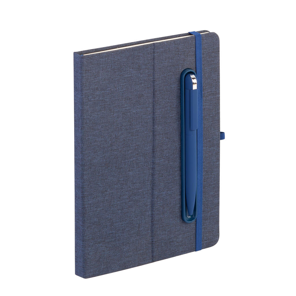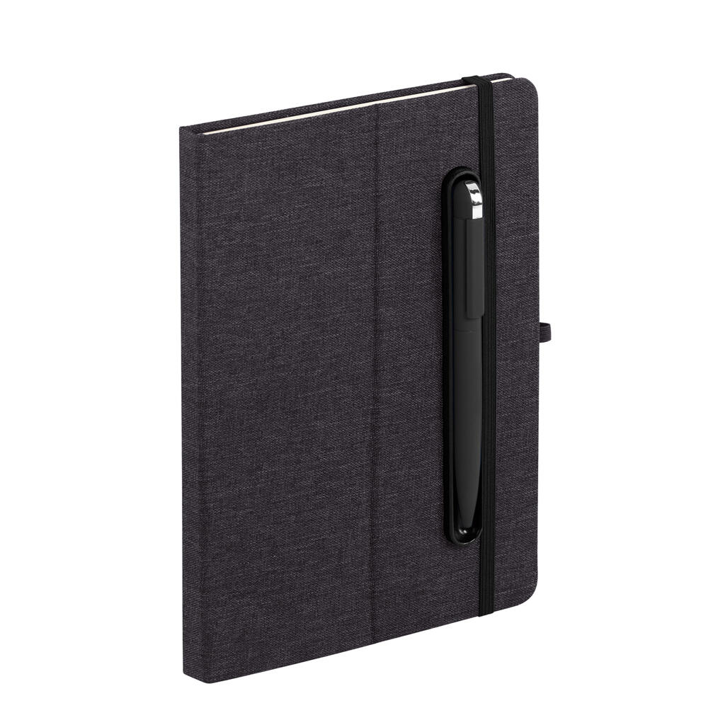 - Блокнот формата А5 с резинкой-фиксатором и встроенным в обложку магнитным держателем для ручки. Внутренний блок состоит из 160 страниц в линейку бумаги плотностью 70 г/м2. Материал обложки изготовлен из переработанного (RPET) пластика. Магниты прочно и надёжно закрепляют металлическую ручку на обложке. Бонус – обложка трансформируется в удобную подставку для смартфона/планшета/ноутбука;