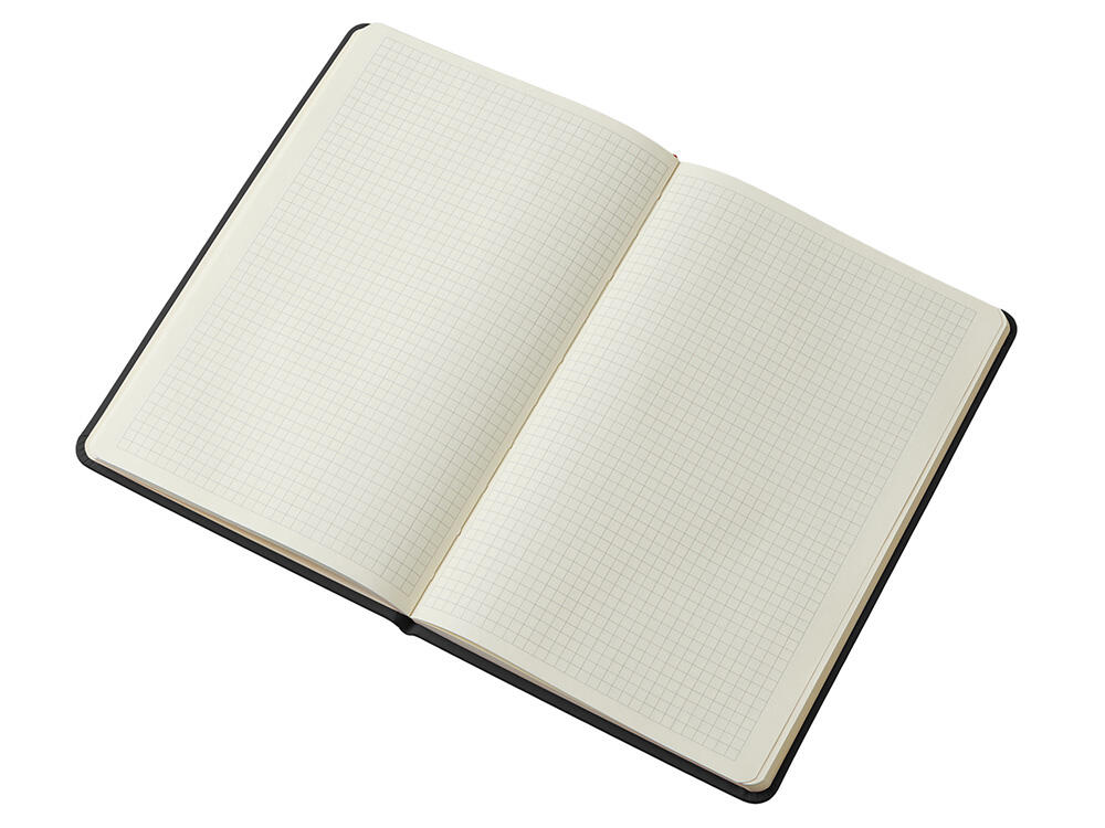 В блокноте 128 страниц в клетку кремового цвета с плотностью 70 г/м2.
