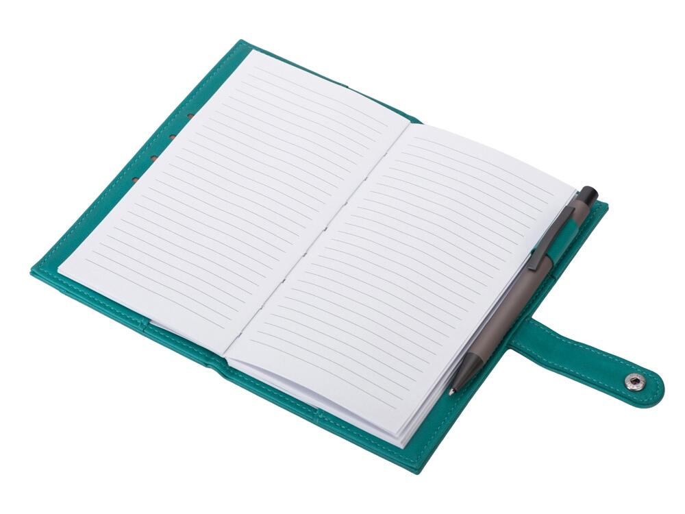 Внутри есть сменный блокнот на 64 листа. В него вы можете записывать планы на день или делать пометки о расходах сразу после оплаты.