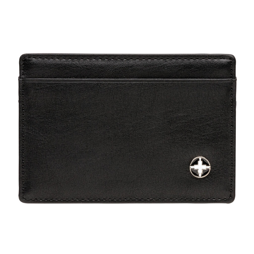 Стильный бумажник Swiss Peak из искусственной кожи (PU) с тремя отделениями для карт. Вмещает в себя до 8 карт. Среднее отделение для купюр и монет. Абсолютная защита от считывания персональных данных (RFID / NFC).