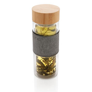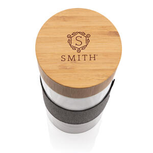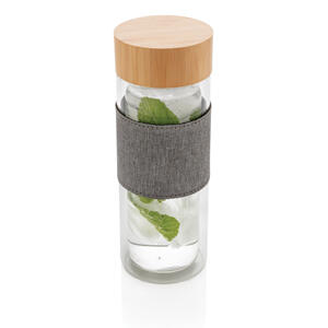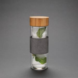 Переход к экологичному образу жизни станет еще проще с этой стеклянной бутылкой с двойными стенками и крышкой из натурального бамбука. Сделана из боросиликатного стекла премиального качества, поэтому подходит даже для горячих напитков. Украшена держателем из материала RPET. Объем 360 мл. Не содержит BPA.