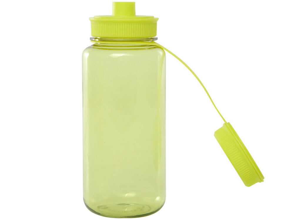 Одностенная спортивная бутылка, изготовленная из переработанного ПЭТ-пластика, сертифицированного RCS, с завинчивающимся верхом, герметичной крышкой и удобной ручкой для переноски, встроенной в крышку. Конструкция с двумя отверстиями для легкой очистки и наполнения. В соответствии с одобренным EFSA (Европейским агентством по безопасности пищевых продуктов) процессом переработки ПЭТ. Объем: 900 мл. Переработанный PET пластик.