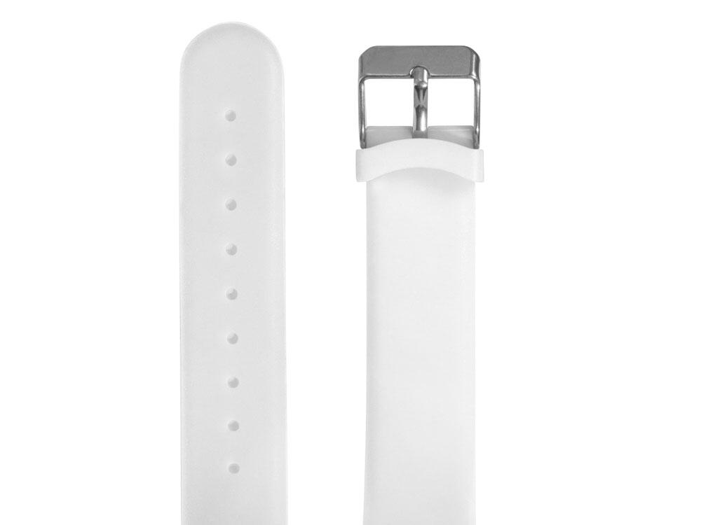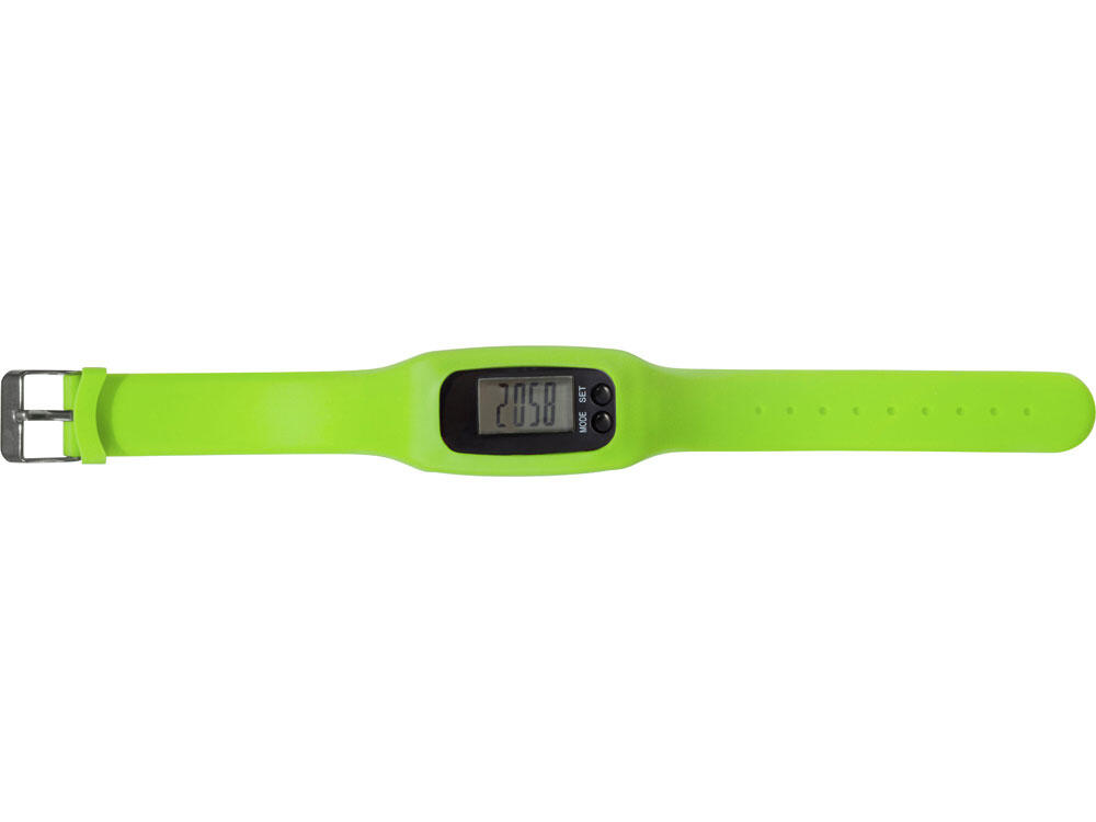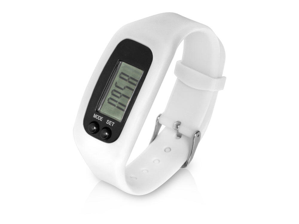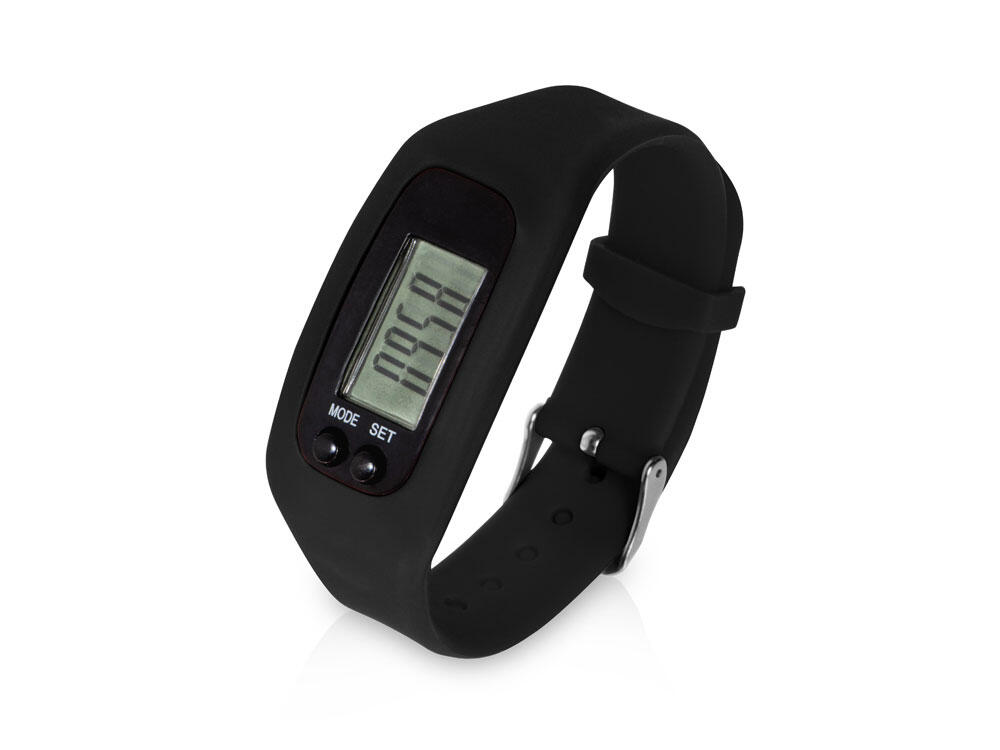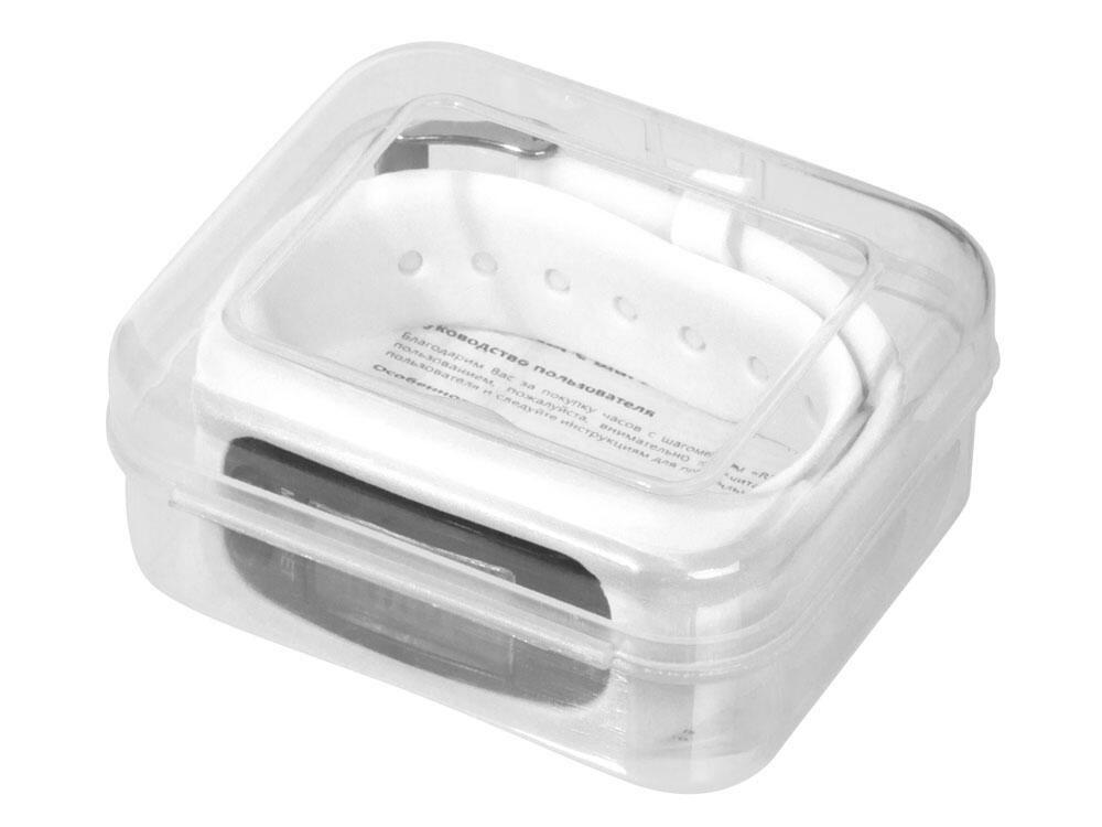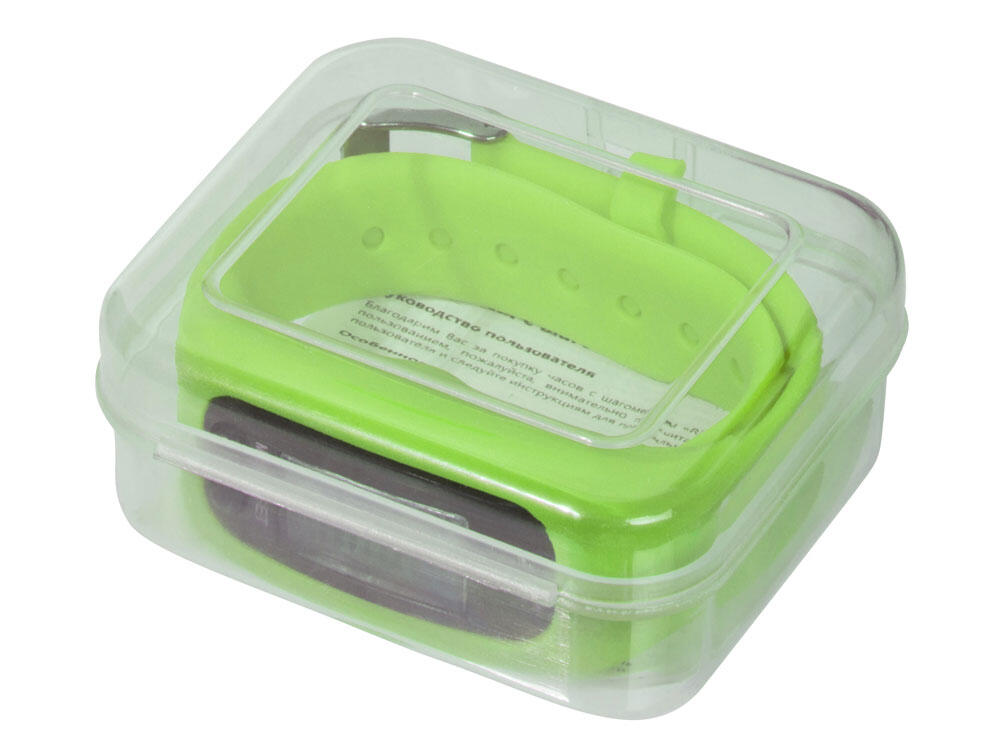 Наручные часы с возможностью отображения времени, калорий, шагов и дистанции. Есть переключение между метрической и британской системами измерений. На силиконовом ремешке можно сделать гравировку. Часы упакованы в пластиковую коробку, которую можно использовать для нанесения. Батарейка в комплекте.