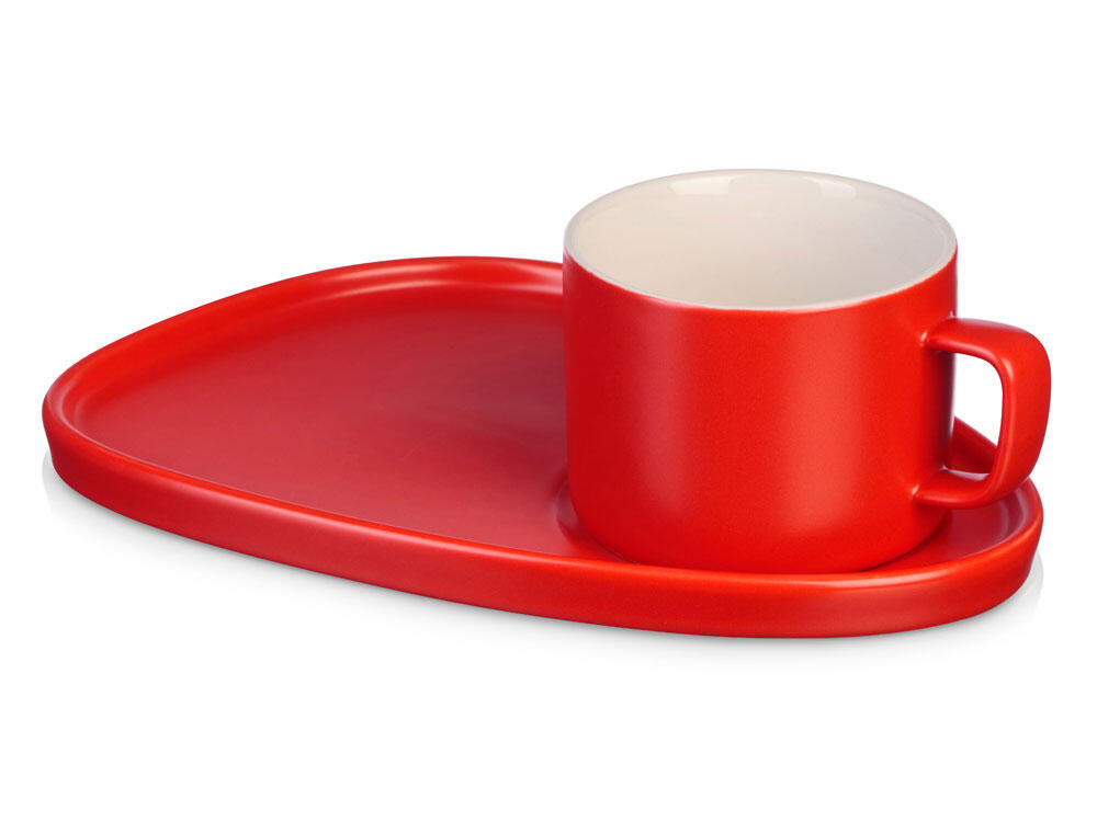 Чайная пара с необычным блюдцем — на нем хватит места не только для чашки, но и для пирожного. Удобство этой чайной пары еще и в том, что для чашки предусмотрена отдельная ниша, которая не даст ей соскользнуть.