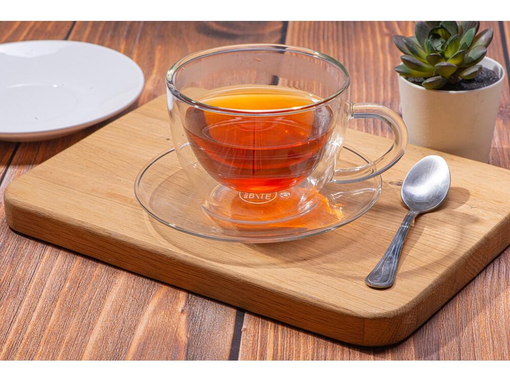 - Двойные стенки из боросиликатного стекла – сохраняют температуру напитка дольше и предотвращают обжигание рук.