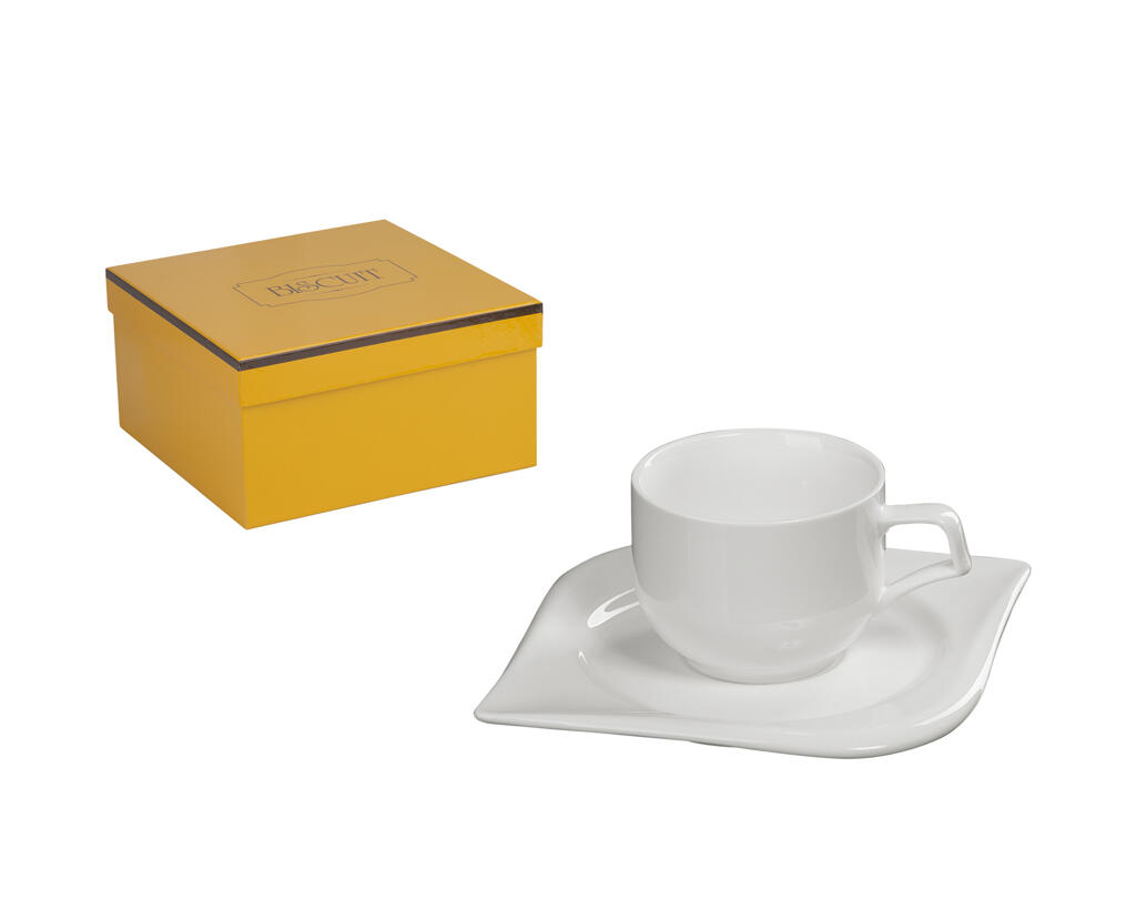 Чайная пара «Вальс» изготовлена из качественного фарфора в белом цвете. Изящный, утонченный дизайн чайного набора придётся по вкусу ценителям классики. Мягкие, плавные линии блюдца притягивают взгляд, а форма чашки кажется самой идеальной для любимого кофе или чая.