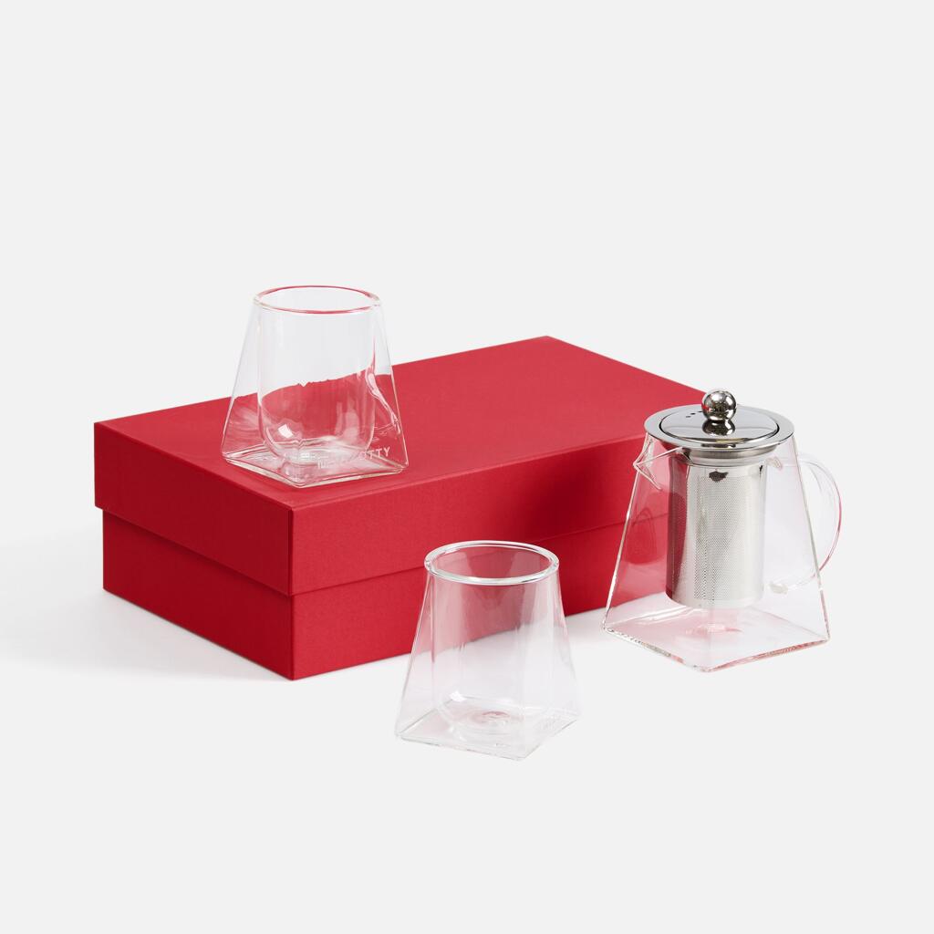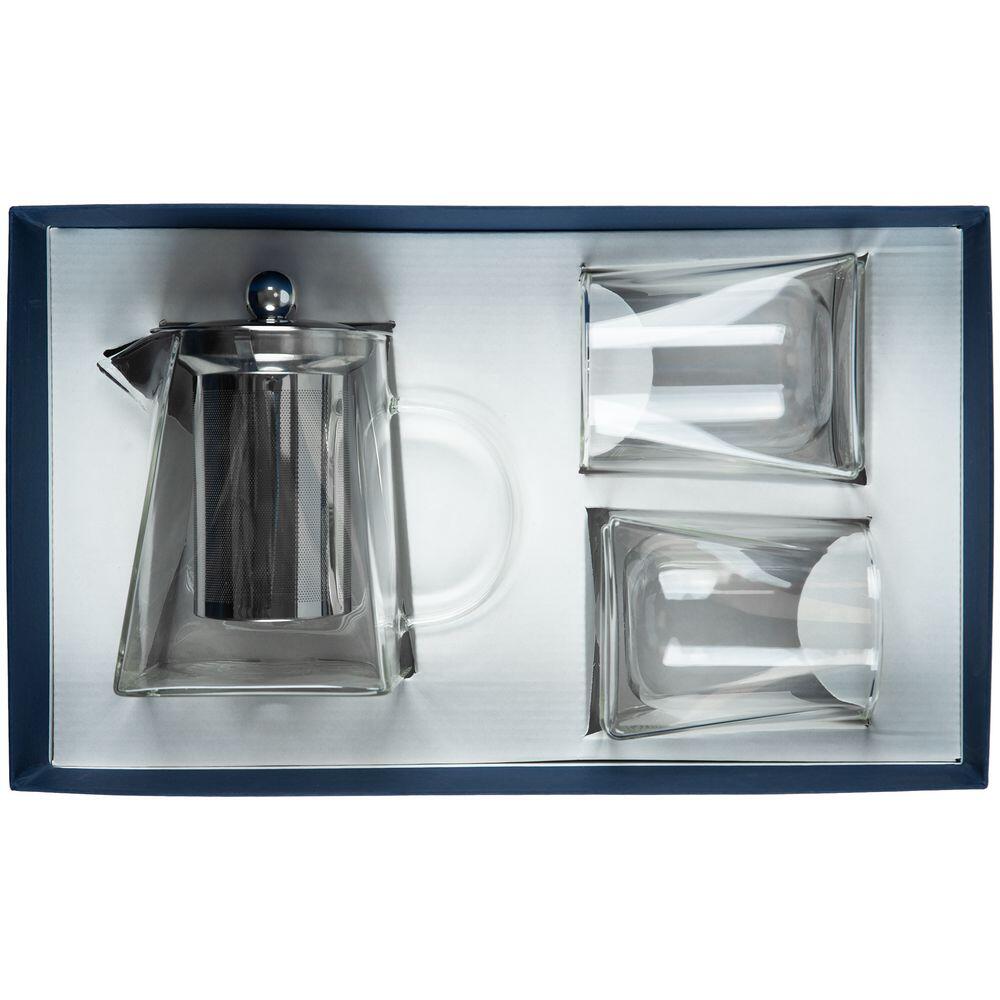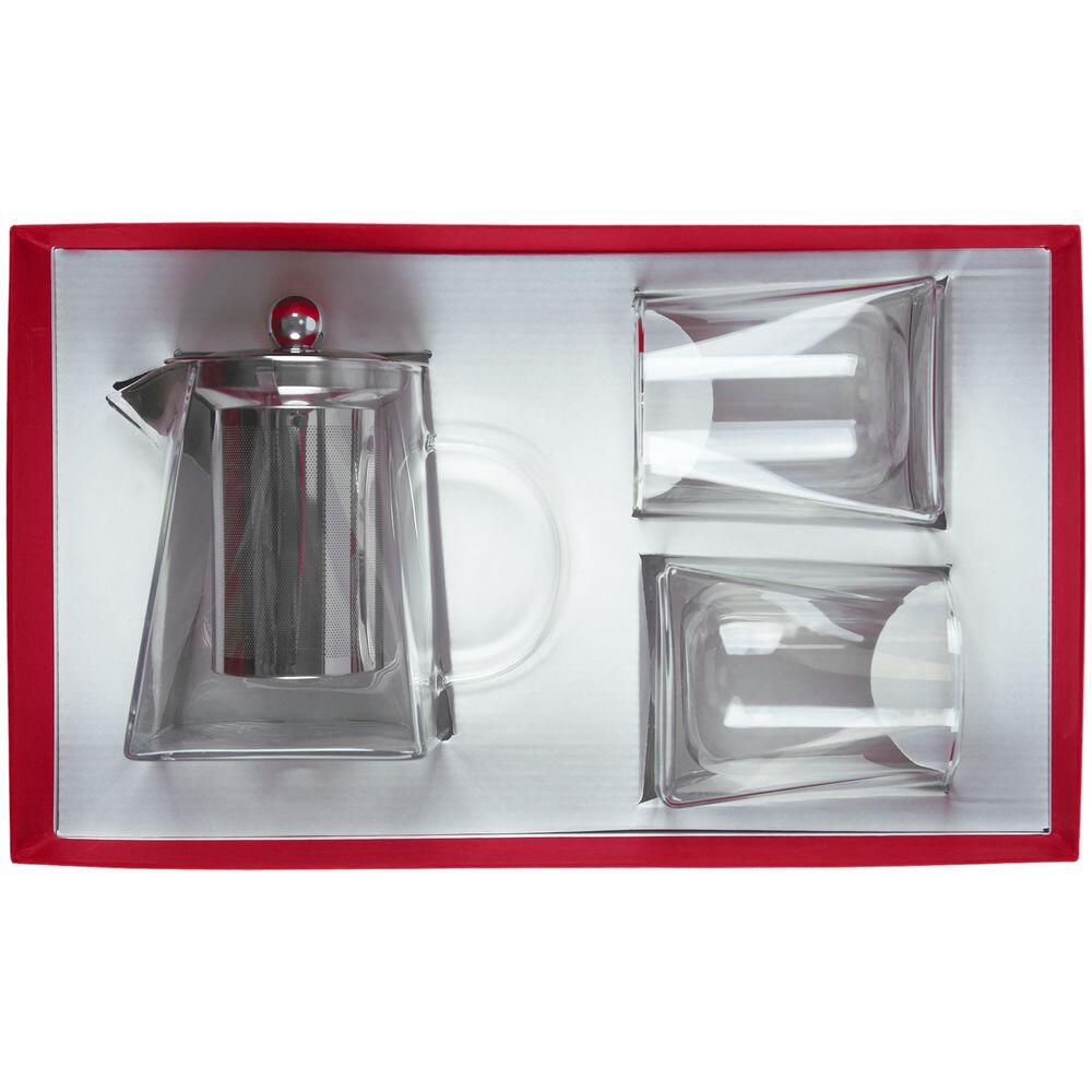 Размерстакан: диаметр 7 см, высота 9,5 см; чайник: диаметр 7,9 см, размер дна 9,5х9,5 см, ширина с ручкой 14 см, высота 13 см; коробка: 34х20,5х10,5 см