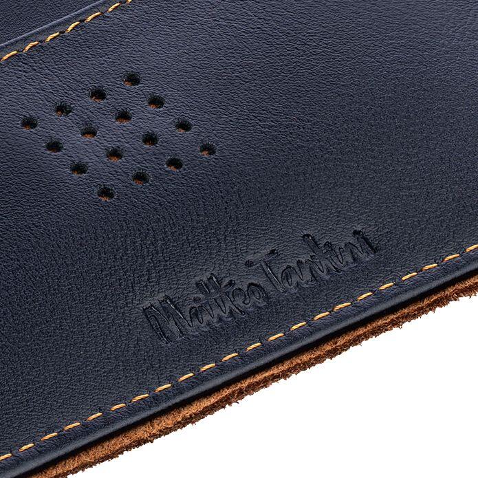 Изделия линейки Palermo изготовлены из гладкой кожи глубокого синего цвета с контрастной отделкой из замши. Оформленные в едином стиле, они легко собираются в подарочные наборы.