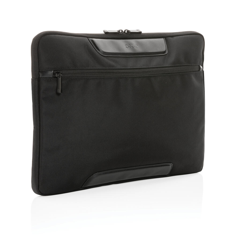 Элегантный чехол для ноутбука Swiss Peak Voyager из RPET AWARE™ — идеальный аксессуар для работы. Изготовлен из сверхпрочного переработанного полиэстера 1680D и декорирован деталями из полиуретана. Подкладка — переработанный полиэстер 150D. Изделие содержит индикатор AWARE™, наличие которого гарантирует подлинность переработанных материалов. При изготовлении каждого чехла мы сэкономили 9,8 литров воды и переработали 16,38 пластиковых бутылок объемом 0,5 л. 2% с продаж каждого товара с индикатором AWARE™ мы отчисляем в поддержку организации Water.org.