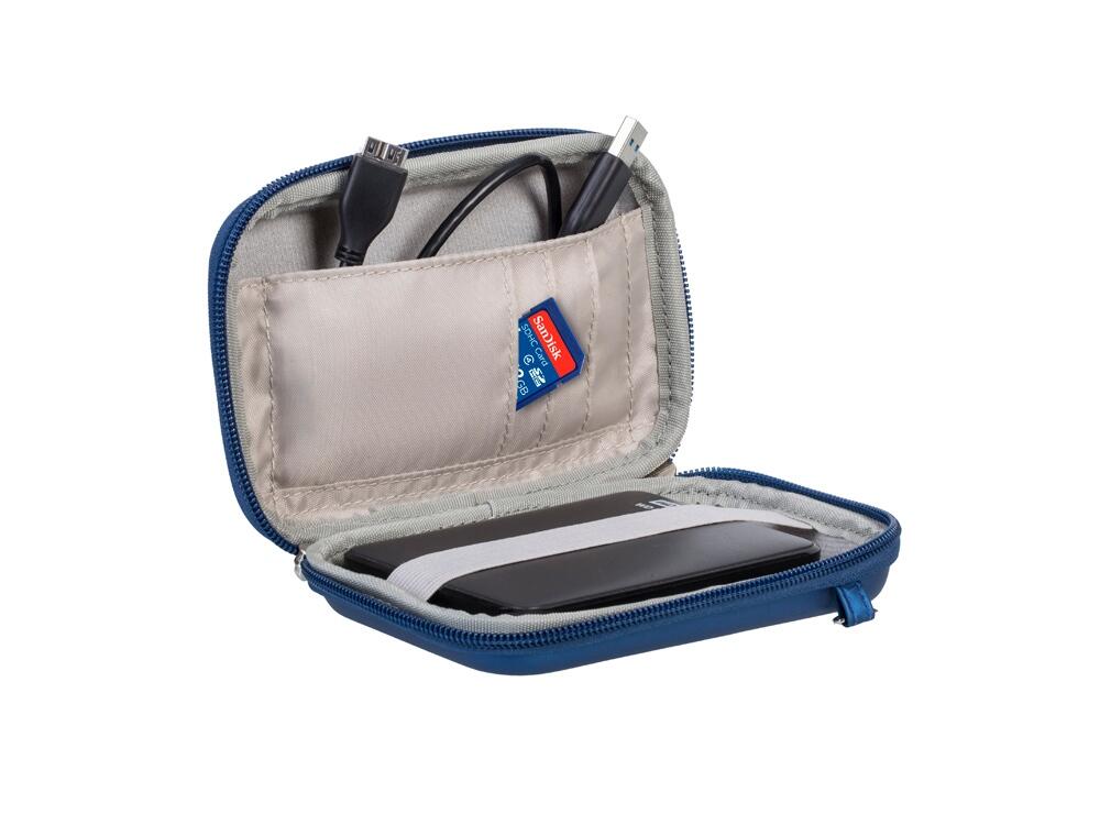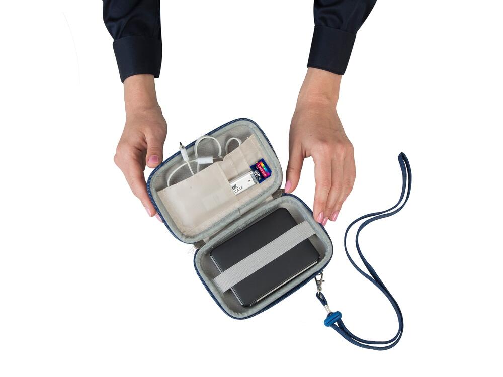 • Устройство надежно крепится внутри чехла специальной фиксирующей лентой, кроме того предусмотрены дополнительные внутренние карманы для кабеля, карт памяти и аксессуаров.
