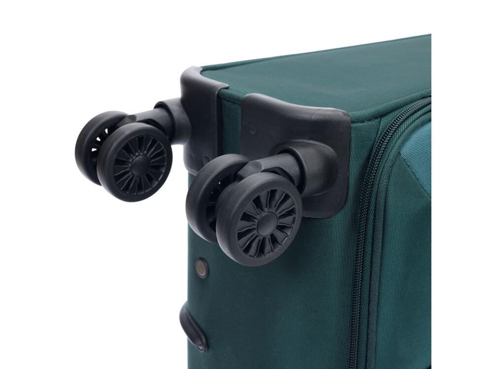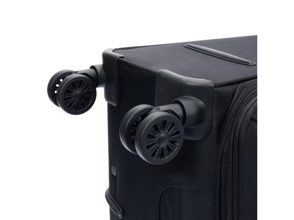 Легкая регулируемая телескопическая алюминиевая ручка и система из четырёх двойных колёс, вращающихся на 360 градусов, обеспечивает мягкий ход и свободное движение во всех направлениях.