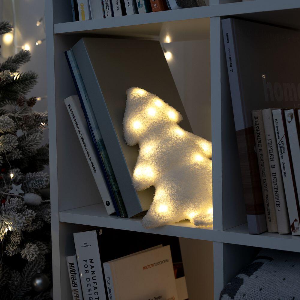 Party Queen — желанная гостья и настоящая королева новогодней вечеринки! Приятная пушистая текстура и теплое свечение делают ее как прекрасной — и очень объемной — елочной игрушкой, так и просто отличной декоративной подвеской, которая органично впишется в любое праздничное оформление. Внутри мягкой елочки находится миниатюрная гирлянда с теплым светом. Работает от 2 батареек типа CR2032 (входят в комплект).