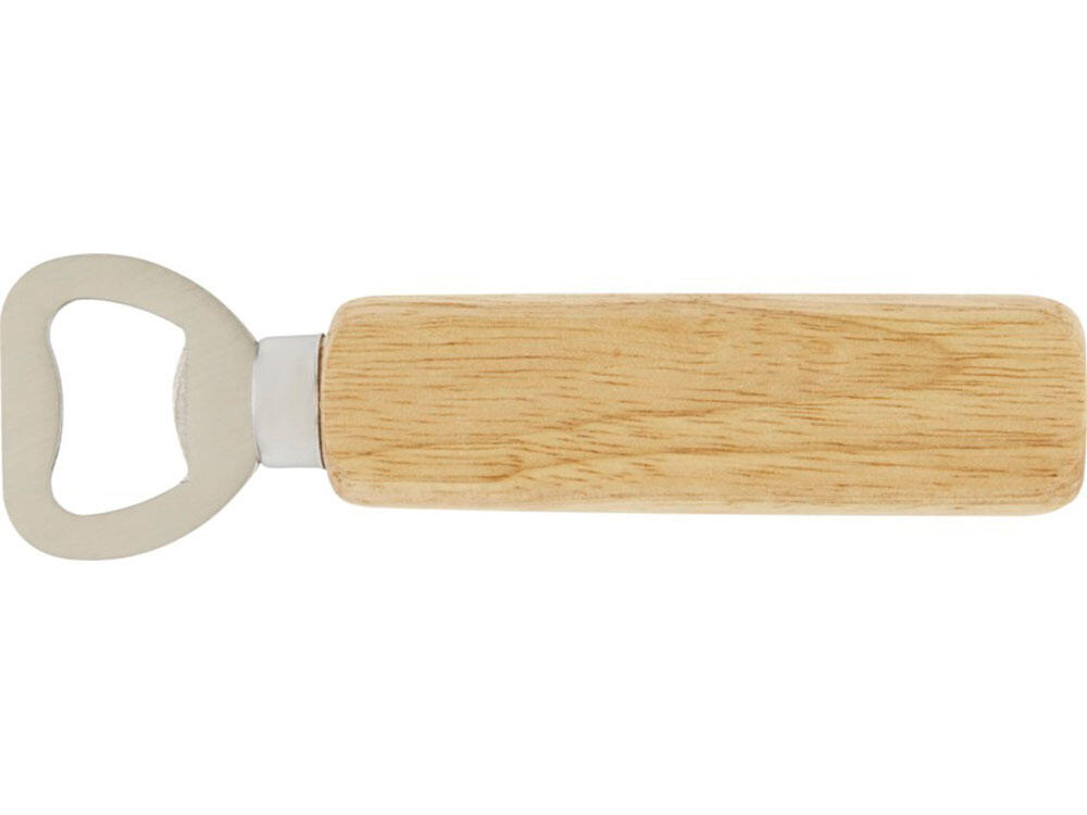 Открывалка для бутылок из нержавеющей стали с деревянной ручкой.