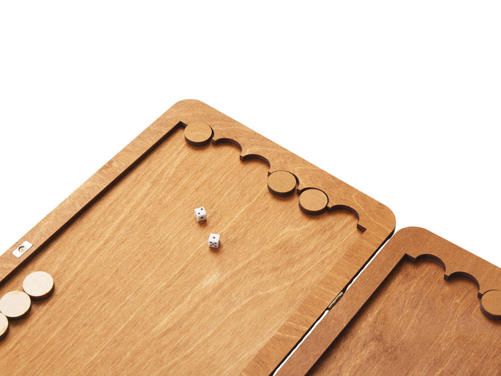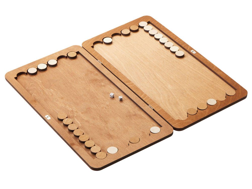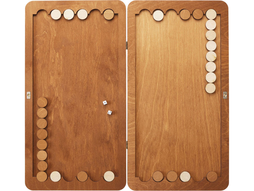 В комплект входят фишки из фанеры двух оттенков, гармонирующих с базовым цветом доски.