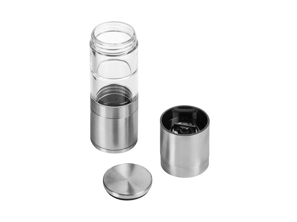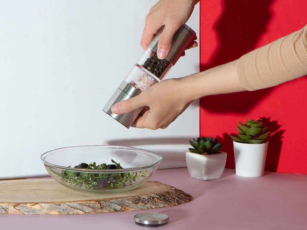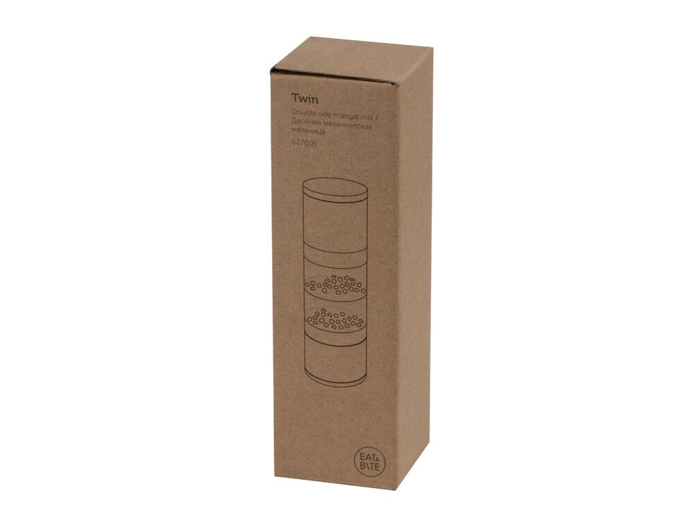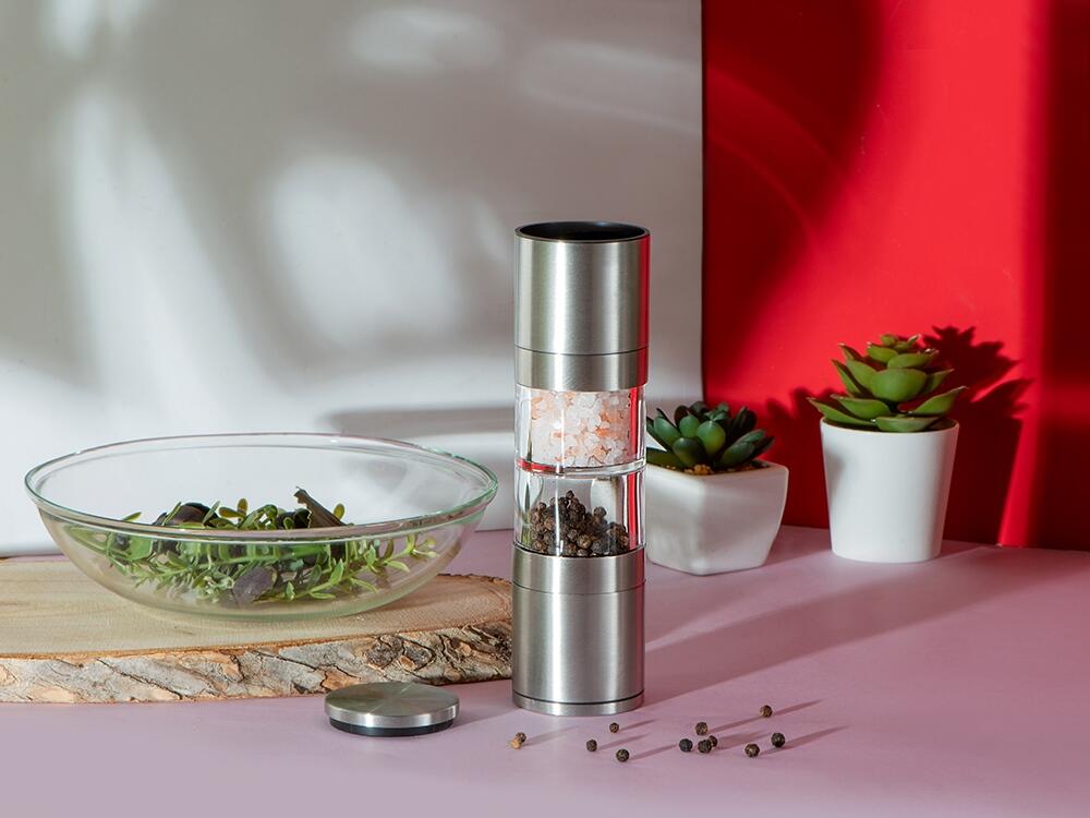 Главный плюс мельницы "Twin" — сразу два отсека для специй, благодаря чему вы сможете сэкономить место на кухне, объединив в одном устройстве сразу два вида приправ. Керамические жернова не боятся коррозии, а высококачественная нержавеющая сталь обеспечивает изделию длительный срок жизни. Кроме того, есть и возможность управления степенью помола при помощи тумблера.