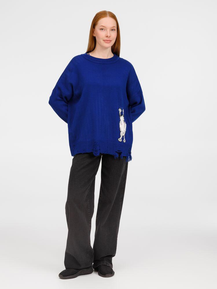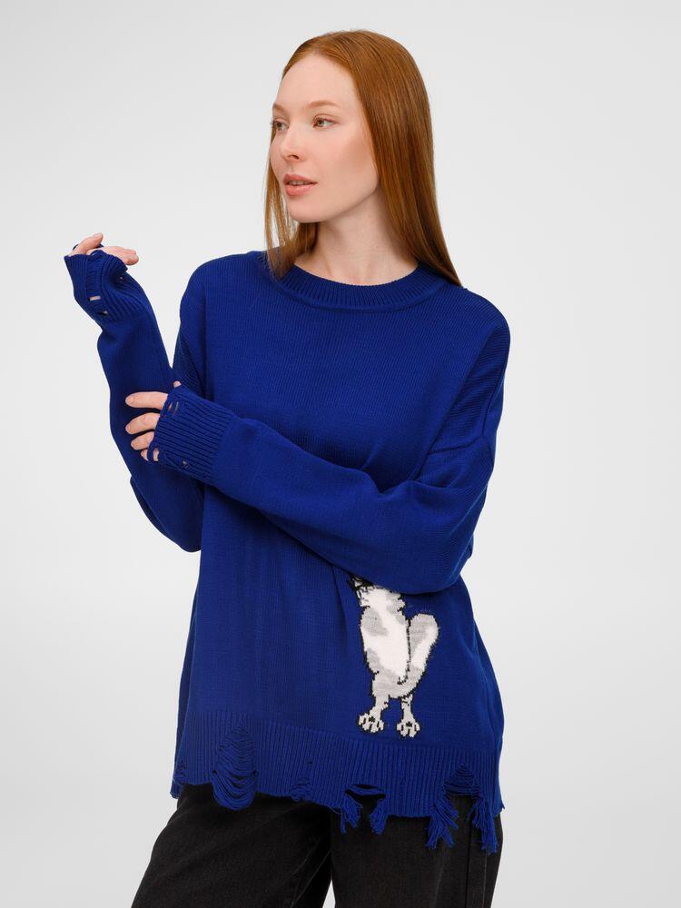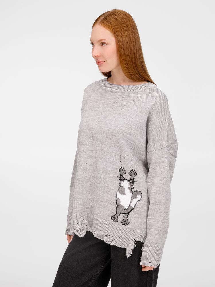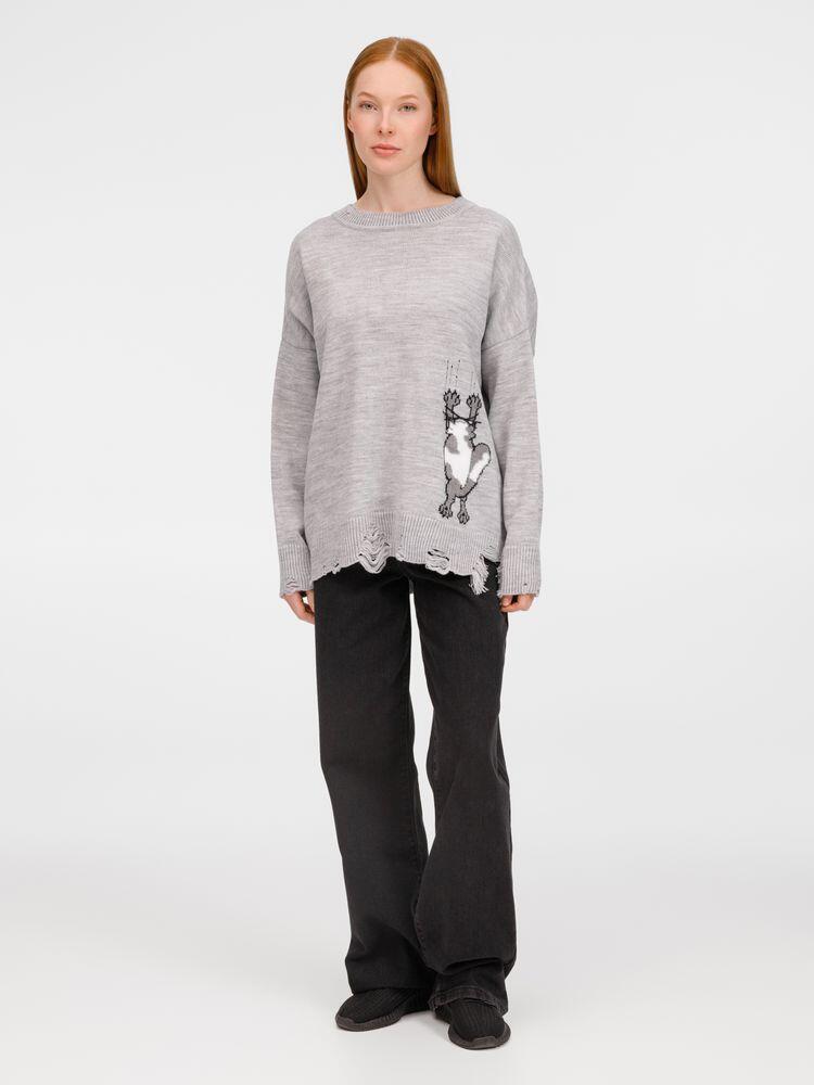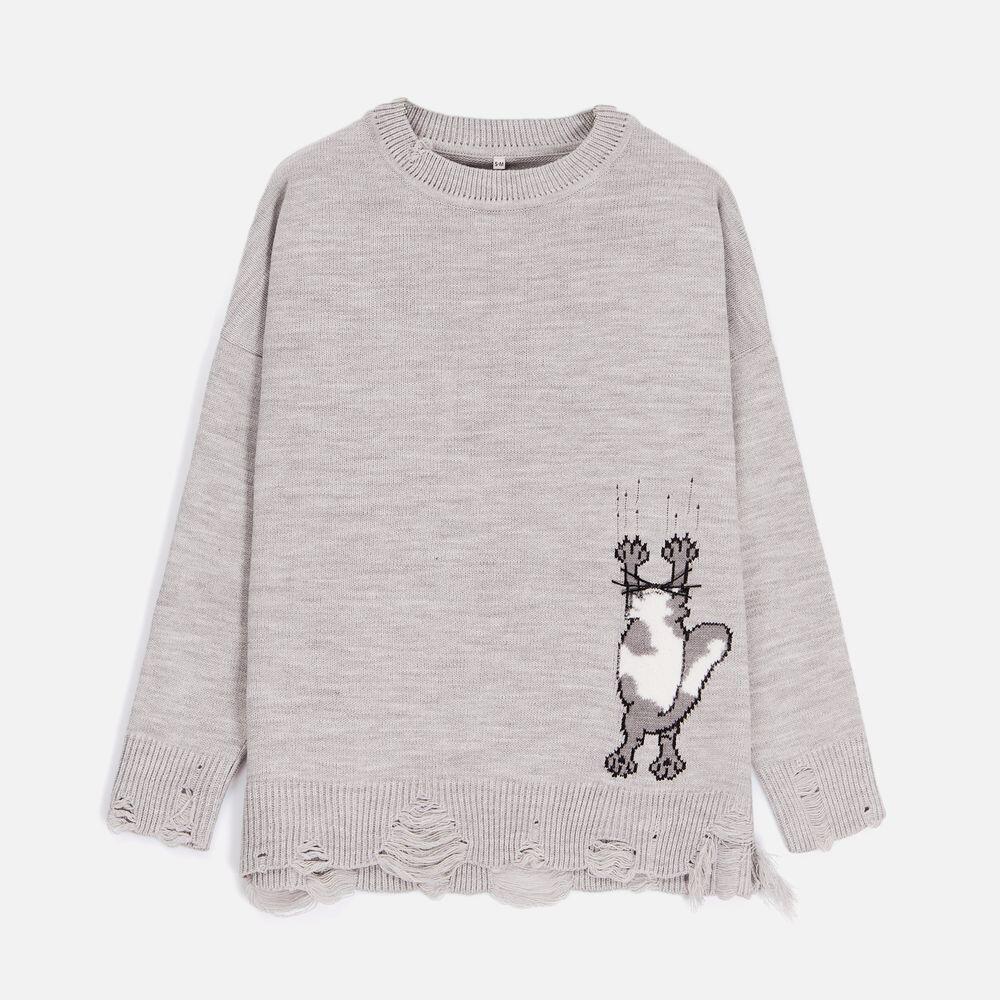 В дизайне мягкого джемпера с круглым вырезом Sharpick гранж-эстетика органично сочетается с милым акцентом — пушистым рисунком в виде озорного котика. Получается веселая вариация на тему того, откуда берется модная рваная одежда, а джемпер моментально создает настроение легкой несерьезности. Рваные края изделия добавляют современную нотку, а резинка на вороте, манжетах и по низу обеспечивает удобную посадку.