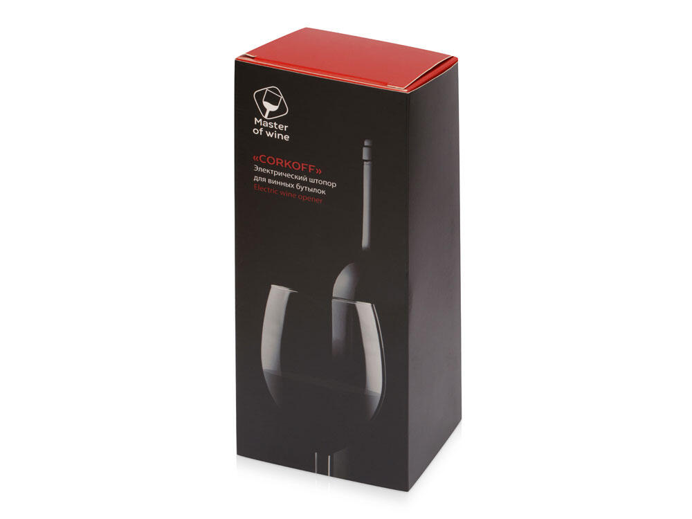 Электрический штопор – незаменимый подарок для ценителей вина. Его корпус выполнен из пластика с тактильно приятным покрытием soft touch. На штопор можно нанести логотип компании. В комплектации: штопор, подставка, инструкция по использованию. Батарейки в комплект не входят.