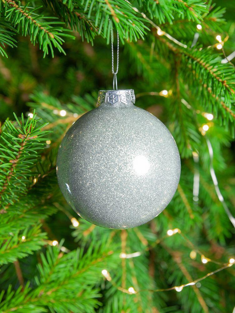 Елочный шар Finery Shine, 8 см, глянцевый серебристый с глиттером
