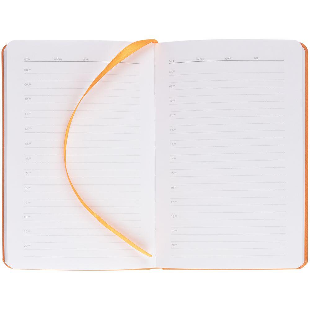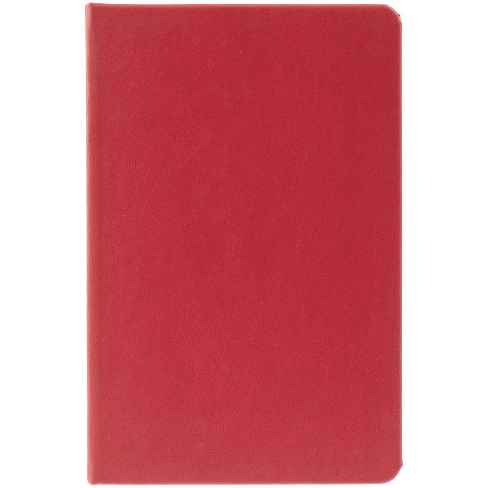Ежедневник с твердой обложкой, выполнен из материала Latte, красный РР, дополнен ляссе в цвет обложки.