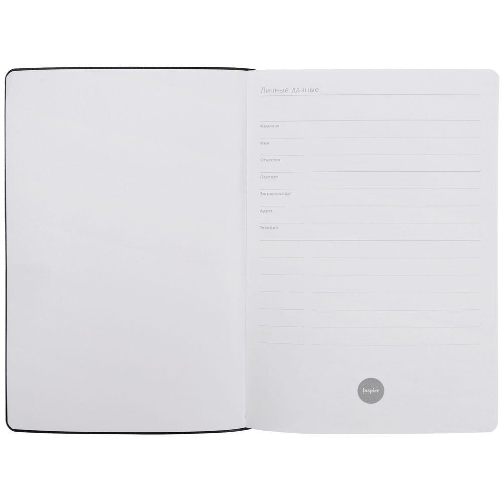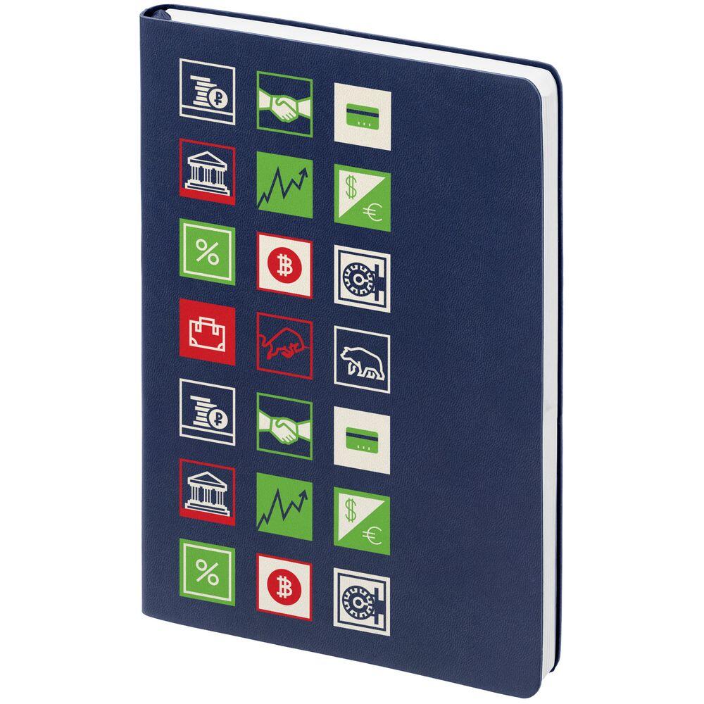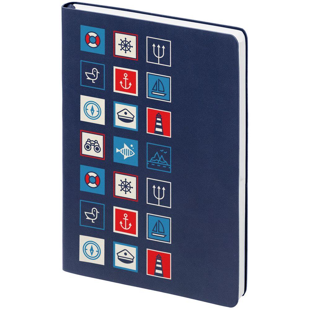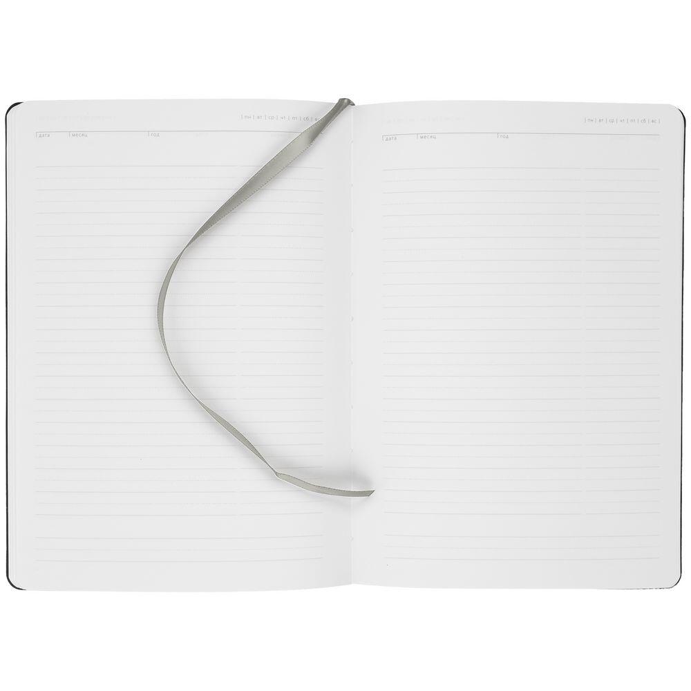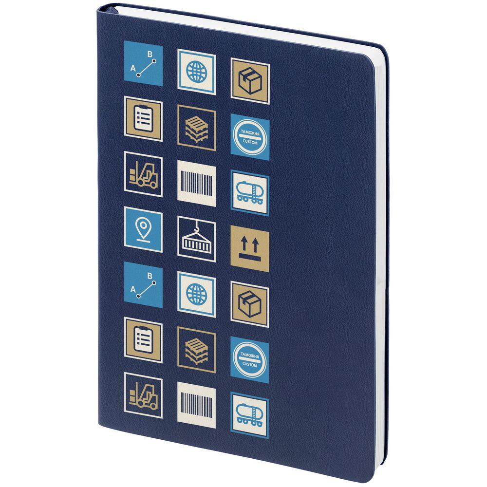 Ежедневник с гибкой обложкой, выполнен из материала Latte, темно-синий, дополнен ляссе в цвет обложки.