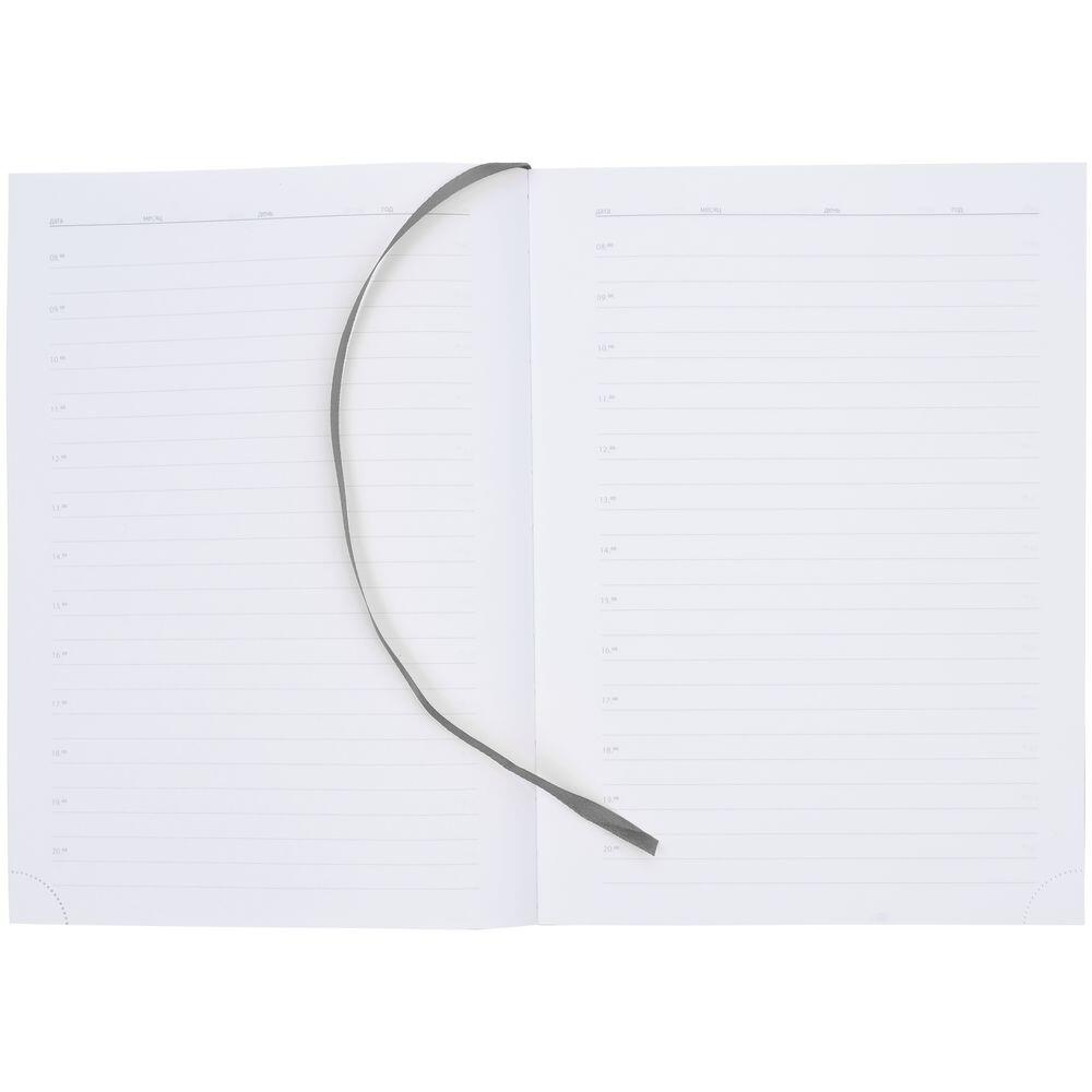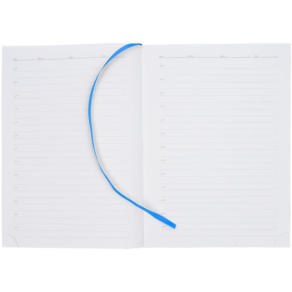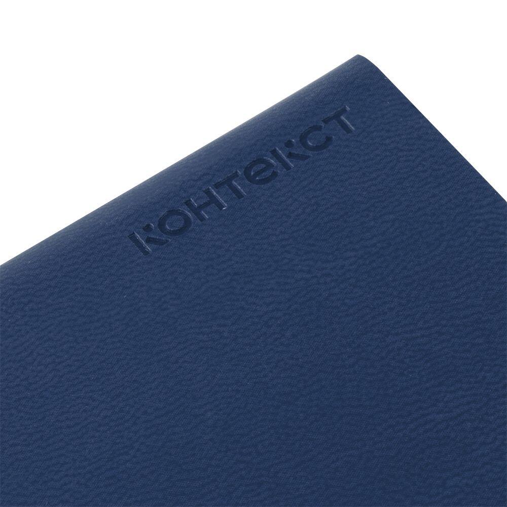 Ежедневник в гибкой обложке выполнен из материала Latte, темно-синий.