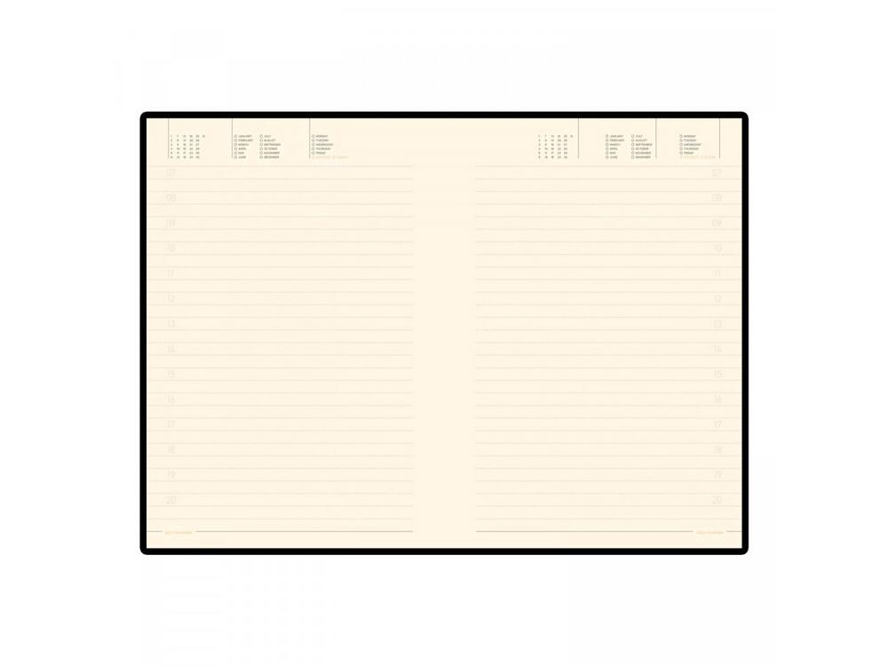 Недатированные деловой ежедневник «Tintoretto». Реальный шов по периметру в цвет материала Гибкий мягкий материал обложки прекрасно подходит для нанесения тиснения. Ежедневники выпускаются в формате В5, его размеры составляют 185 х 230 мм. Блок - 136 листов соединен полускрытым металлическим гребнем. Для блока используется высококачественная бежевая бумага, обладающая плотностью 70 грамм. В начале ежедневника расположены страницы со справочным материалом.