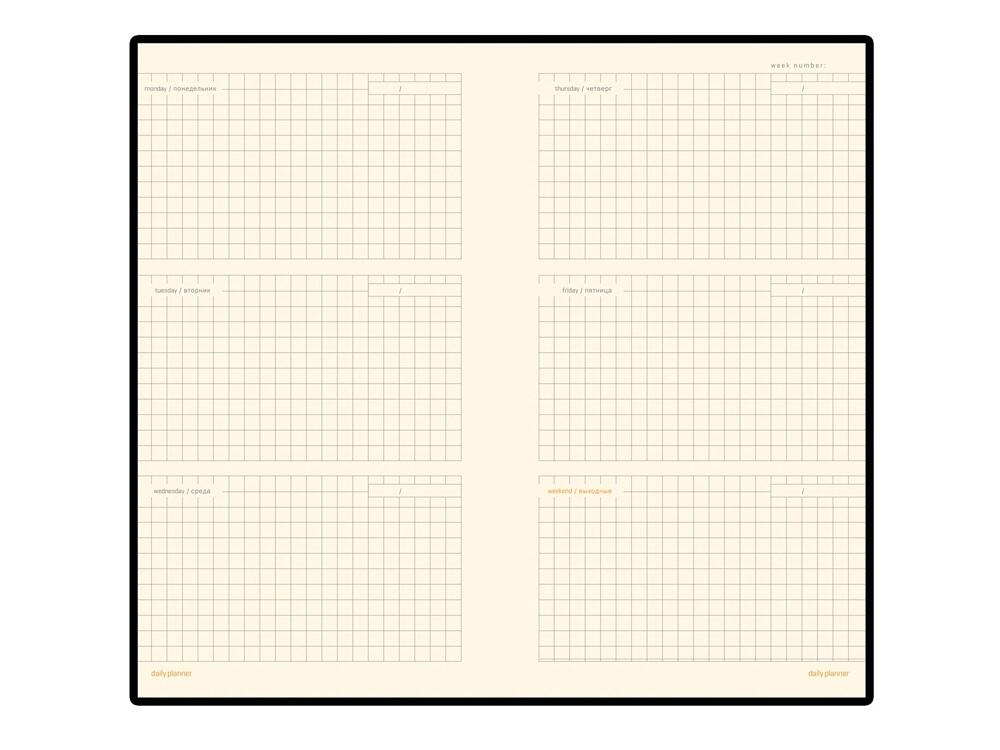 Удобный практичный недатированный еженедельник в мягкой обложке из прочного переплетного материала. Контрастная прострочка белыми нитками по периметру привлекает внимание к изящной форме обложки с закругленными уголками. Обложка украшена металлическим шильдиком. Линовка блока - клетка, с указанием дней недели. Карманный формат этого еженедельника позволяет эффективно вести записи на выездных совещаниях, переговорах и встречах. Готов к персонализации.