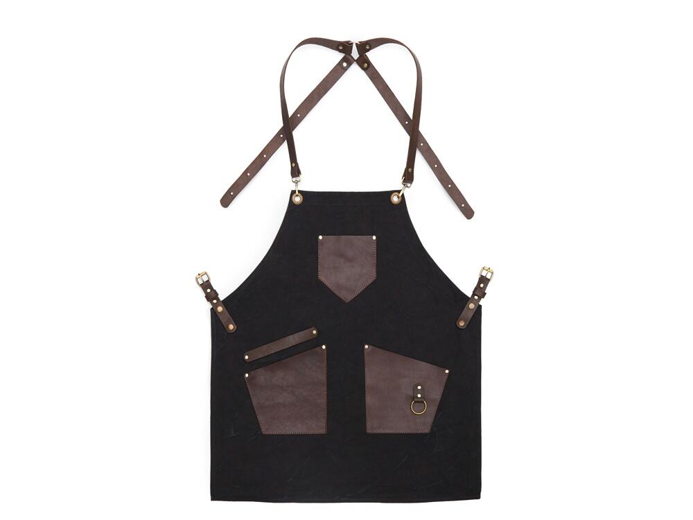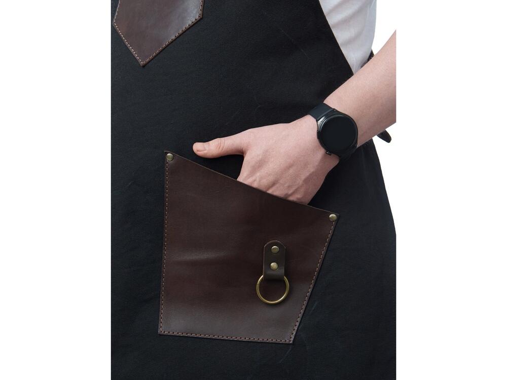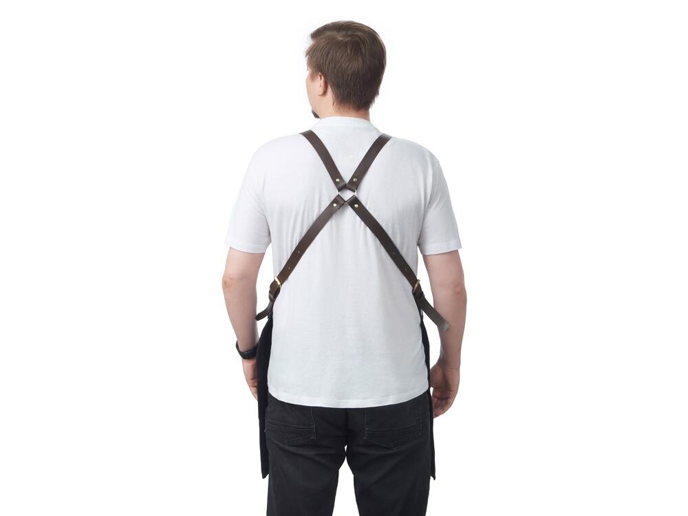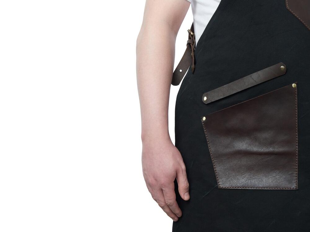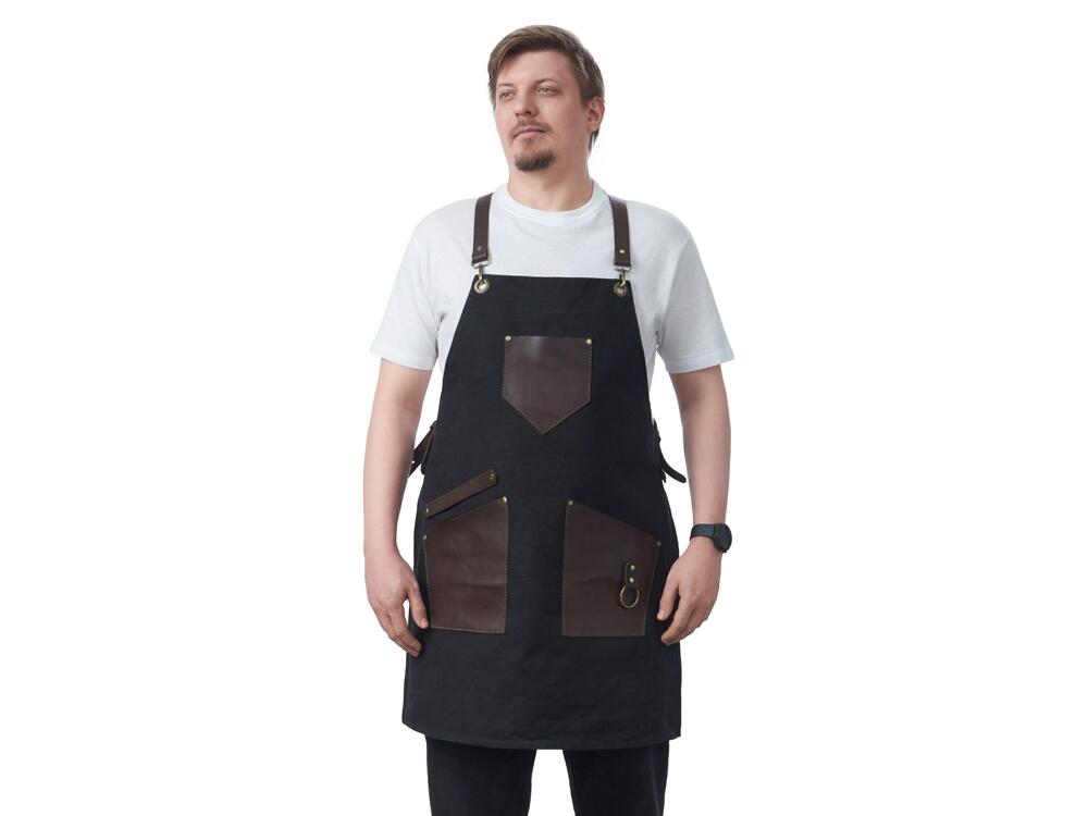 - Эстетика и стиль: Черный цвет фартука в сочетании с коричневыми кожаными элементами создает стильный и современный образ. Этот фартук подойдет как для профессиональной, так и для домашней кухни, а также для барбекю и других активных хобби.