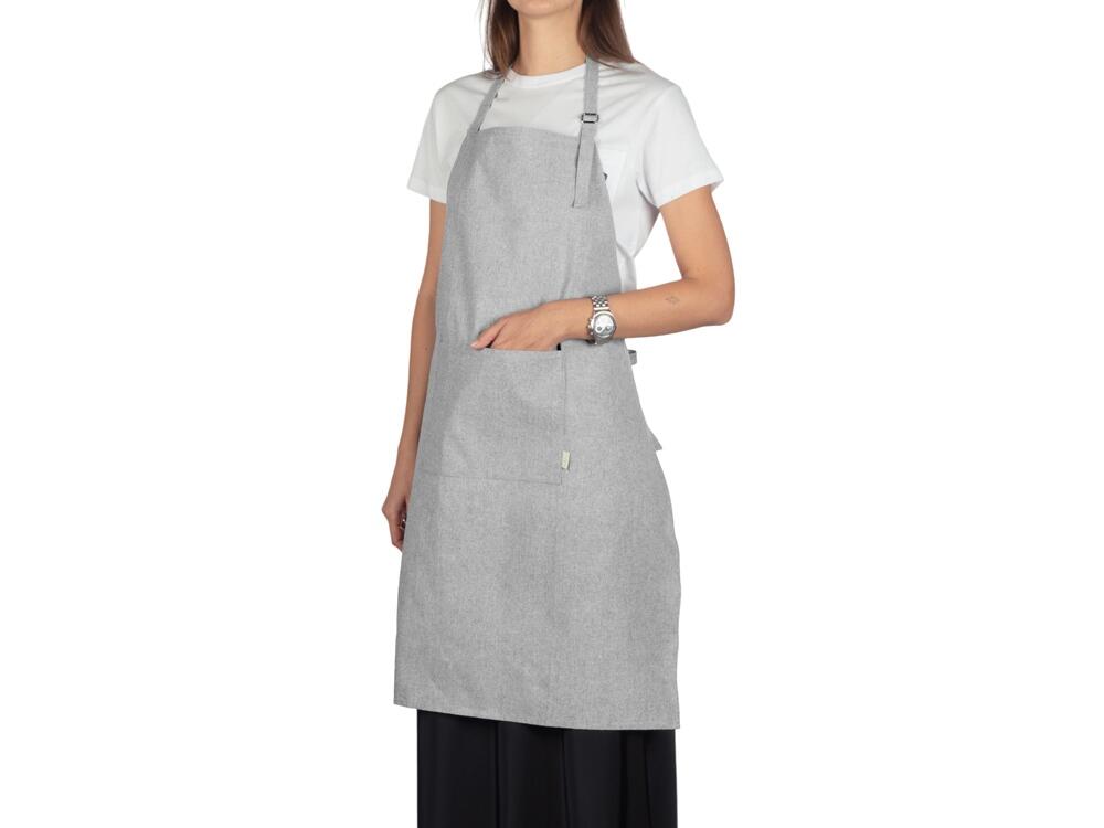 Позаботьтесь об экологии, готовя с комфортом! Этот фартук выполнен из полностью переработанных материалов: 90% переработанного хлопка и 10% переработанной вискозы. Его плотность составляет 170 грамм, что обеспечивает оптимальный баланс между легкостью и прочностью.