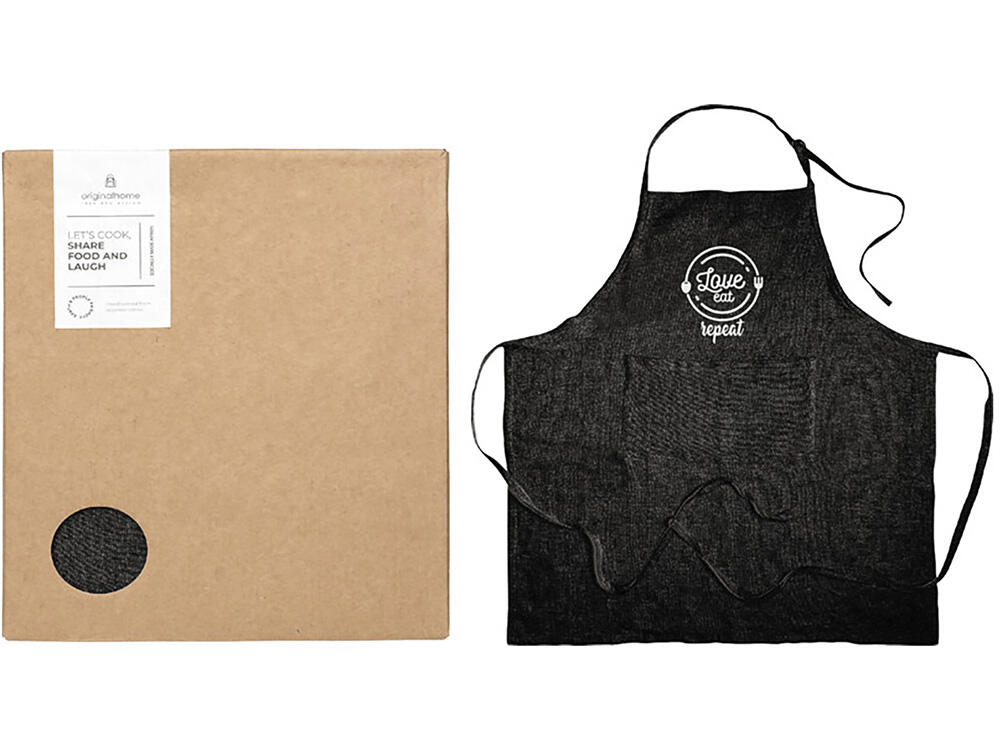 Фартук изготовлен из 100% переработанных материалов, полученных от швейной промышленности Бангладеш. Изготовленный на традиционном ручном станке, он поддерживает женское предпринимательство, что делает его идеальным социальным подарком, способствующим как устойчивому развитию, так и социальной ответственности. Состав: 70% переработанного хлопка, 25% переработанного полиэстера, 5% других переработанных волокон.