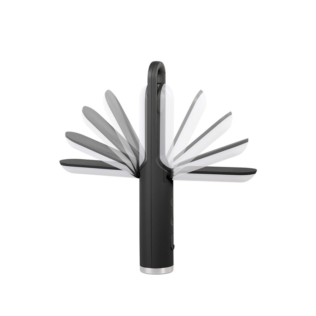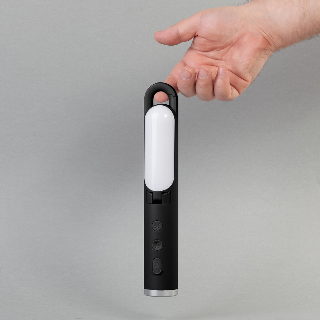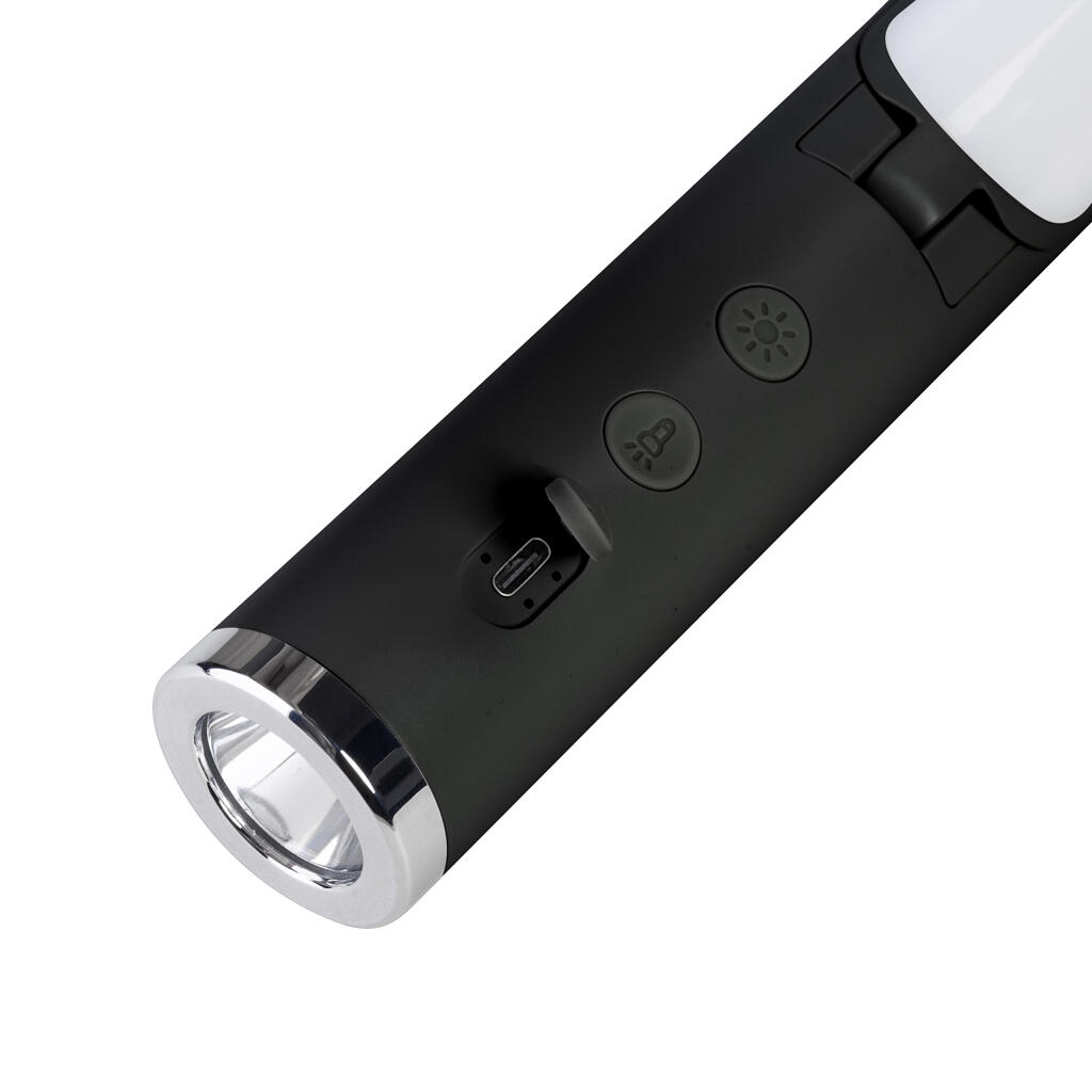 Лампа (169 лм) с теплым объемным светом 5 режимов, 2 сегмента с независимой регулировкой угла 0-90º. Фонарь (79 лм) с холодным светом 4 режима, направленный луч для построения маршрута. Встроенная батарея емкостью 1200 mAh, зарядка через разъем type-C, индикатор 25/50/75/100%.
